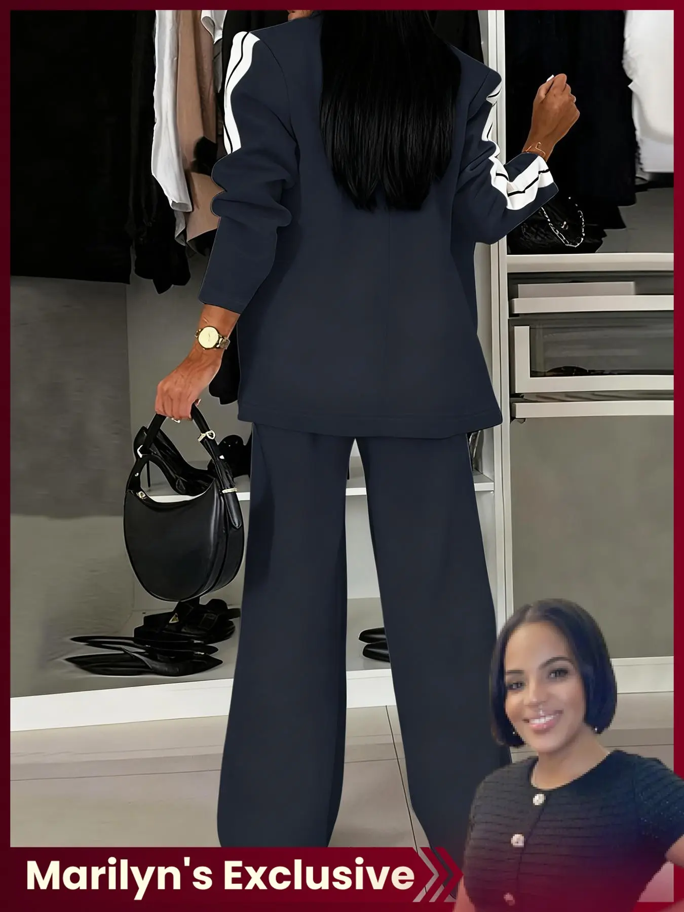Love this set. Sweat pants fit perfectly for a 5’2” woman. Unfortunately there are no pockets. Strip down the side gives the pants style. The jacket has pockets and buttons. It is fitted but has plenty ofstretch. I received plenty of compliments on my first wear with a black tee and adidas sneakers.
