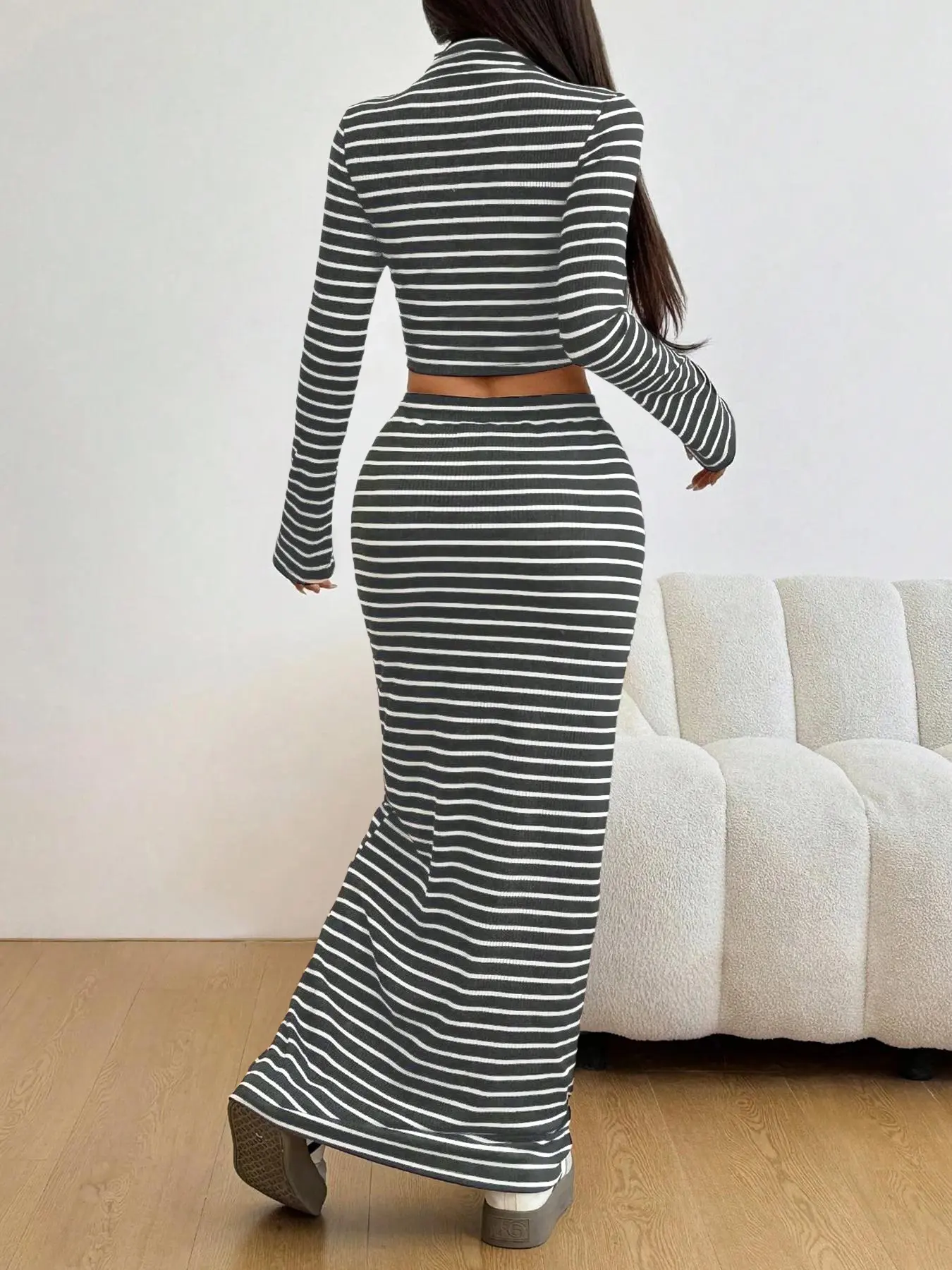 Very nice 2 piece I’m 5”5 and it comes to the floor on me nice material and color