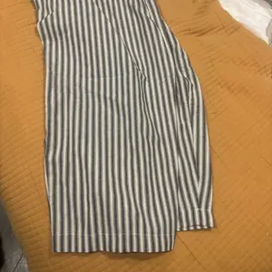 Does not match the pictured item at all, though the material seems nice enough. Lightweight. Was expecting better quality and thinner stripes as pictured on the product page. Also, it’s more grey and beige than black and white.