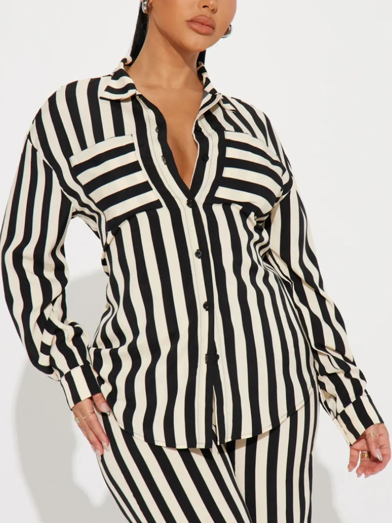 Women's black and white striped lapel long-sleeved button-down shirt and wide-leg pants set. Fashionable women's clothing for everyday wear and office use, perfect for all seasons.Women's black and white striped lapel long-sleeved button-down shirt and wide-leg pants set. Fashionable women's clothing for everyday wear and office use, perfect for all seasons.Women's black and white striped lapel long-sleeved button-down shirt and wide-leg pants set. Fashionable women's clothing for everyday wear and office use, perfect for all seasons.Women's black and white striped lapel long-sleeved button-down shirt and wide-leg pants set. Fashionable women's clothing for everyday wear and office use, perfect for all seasons.Women's black and white striped lapel long-sleeved button-down shirt and wide-leg pants set. Fashionable women's clothing for everyday wear and office use, perfect for all seasons.