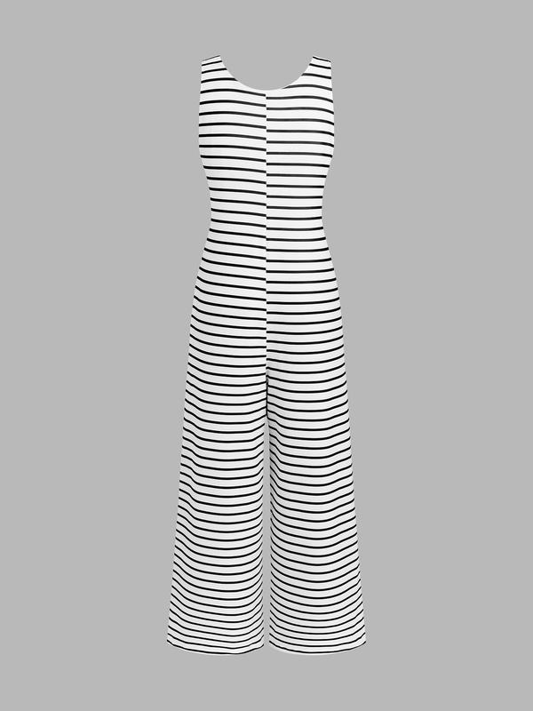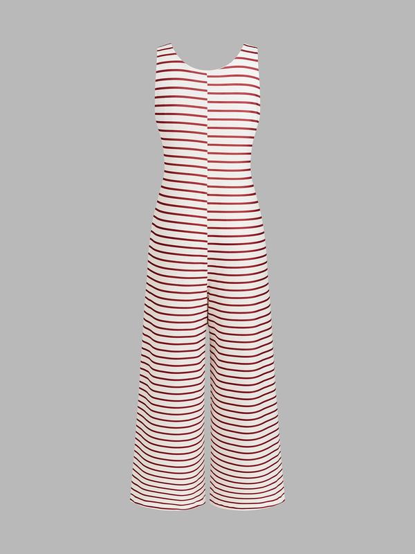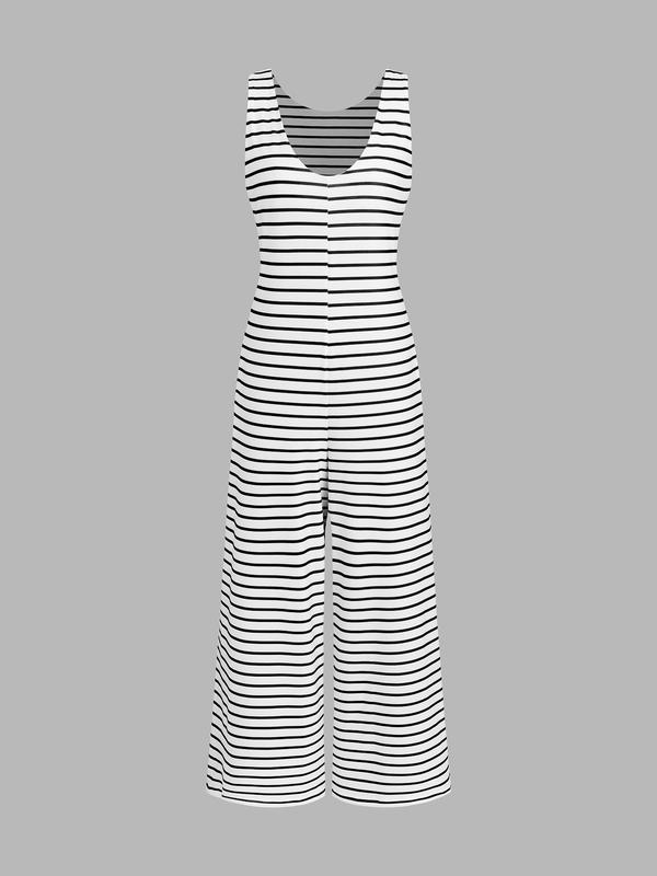 Women's Striped Sleeveless Loose Comfortable Jumpsuit, Stylish Summer for Casual Wear, Adjustable Fit for All Body Types