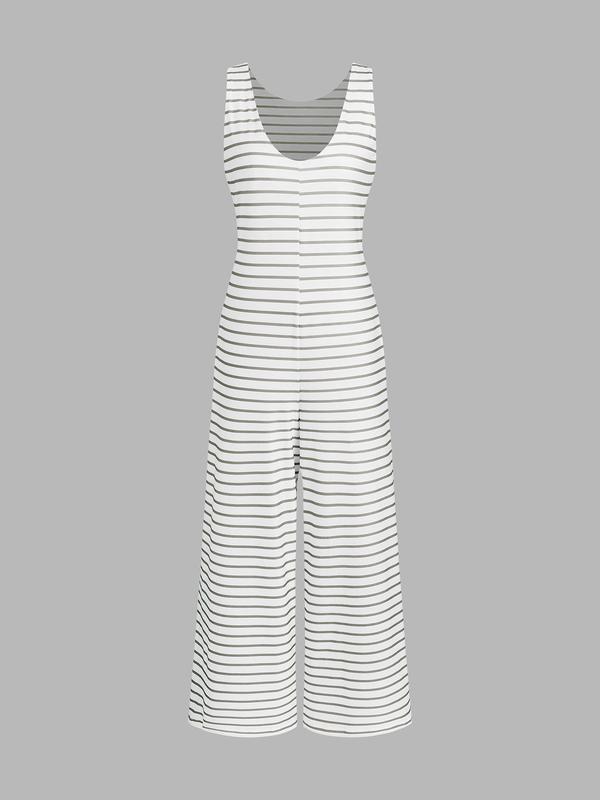 Women's Striped Sleeveless Loose Comfortable Jumpsuit, Stylish Summer for Casual Wear, Adjustable Fit for All Body Types #bodysuits #bamboopajamas #sweatsuitset #womenssweatshirtset #thermaljumpsuit #fashionablewomensclothing #skimsbodysuit #gaploungewear #babytwopieceset #plussizepajamas