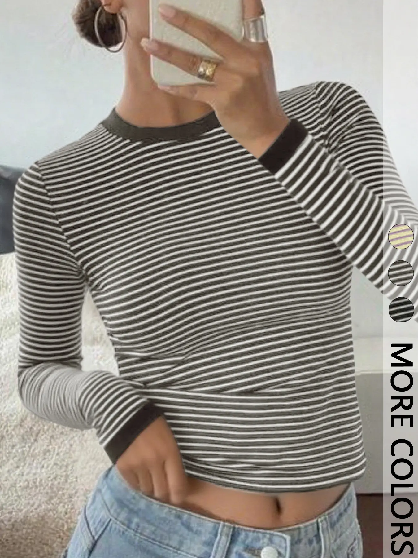Women's Striped Slim-Fit Long Sleeve Casual Summer Top, Stylish Plain Fashion Tee for Daily Wear, Comfortable & Trendy Design
