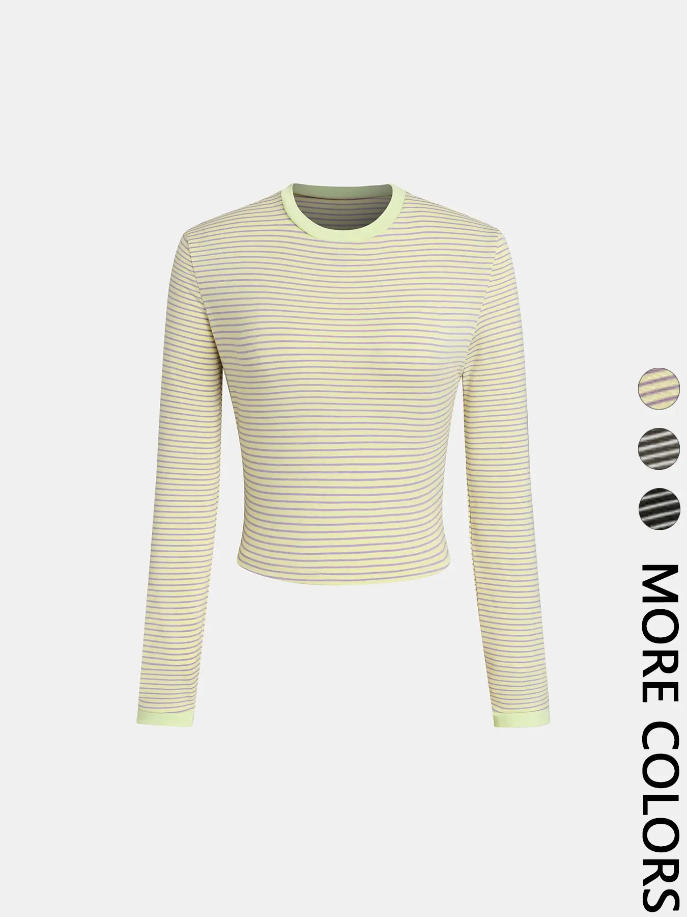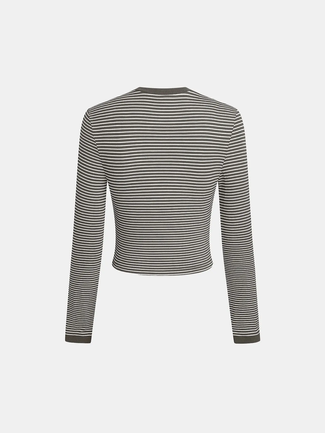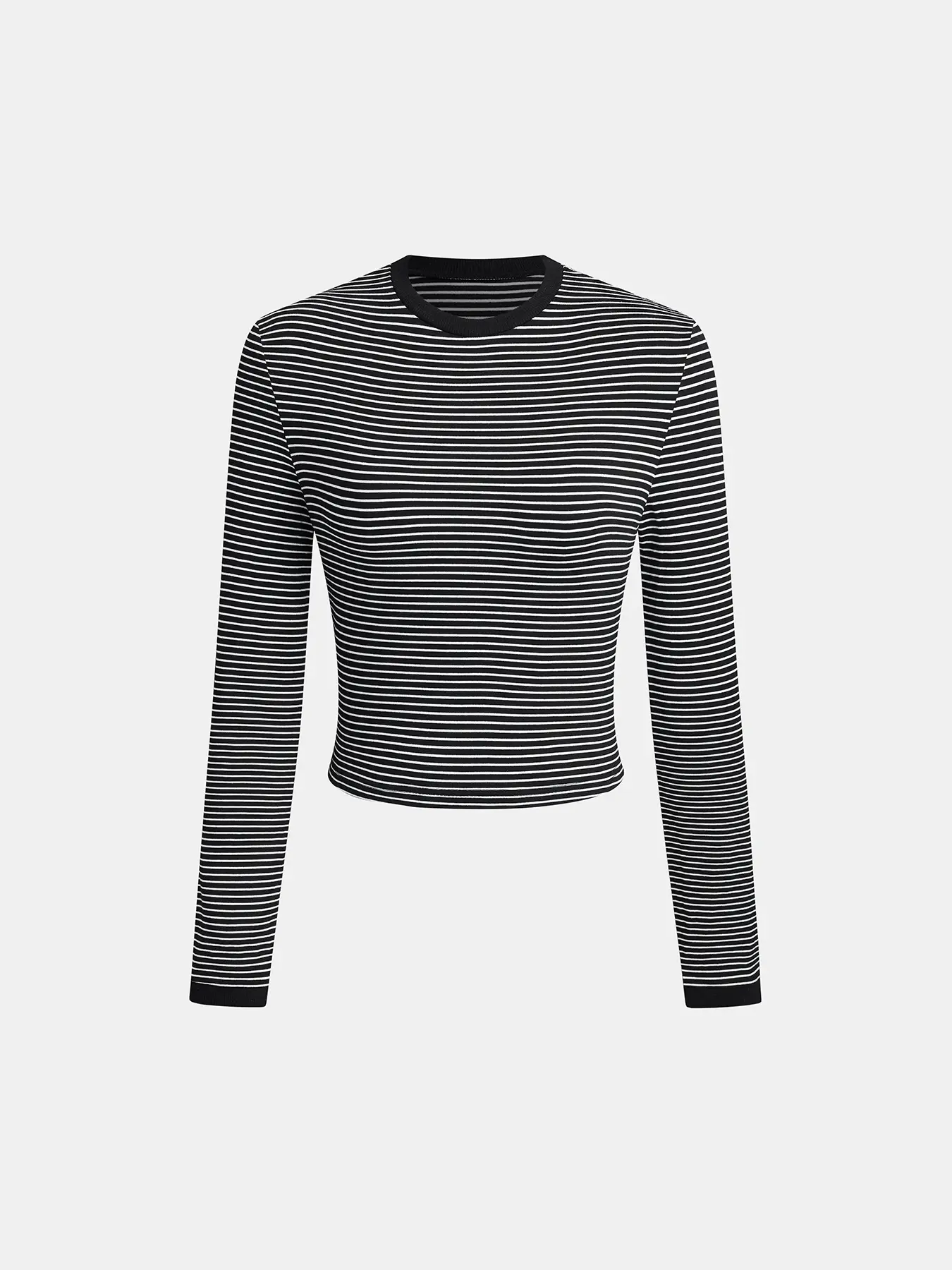 Striped Slim Fit Long Sleeve Crop Top #WomensCropTop#TikTokShopFallDealsForYou#spotlightfinds#tiktokshopblackfriday #tiktokshopcybermonday