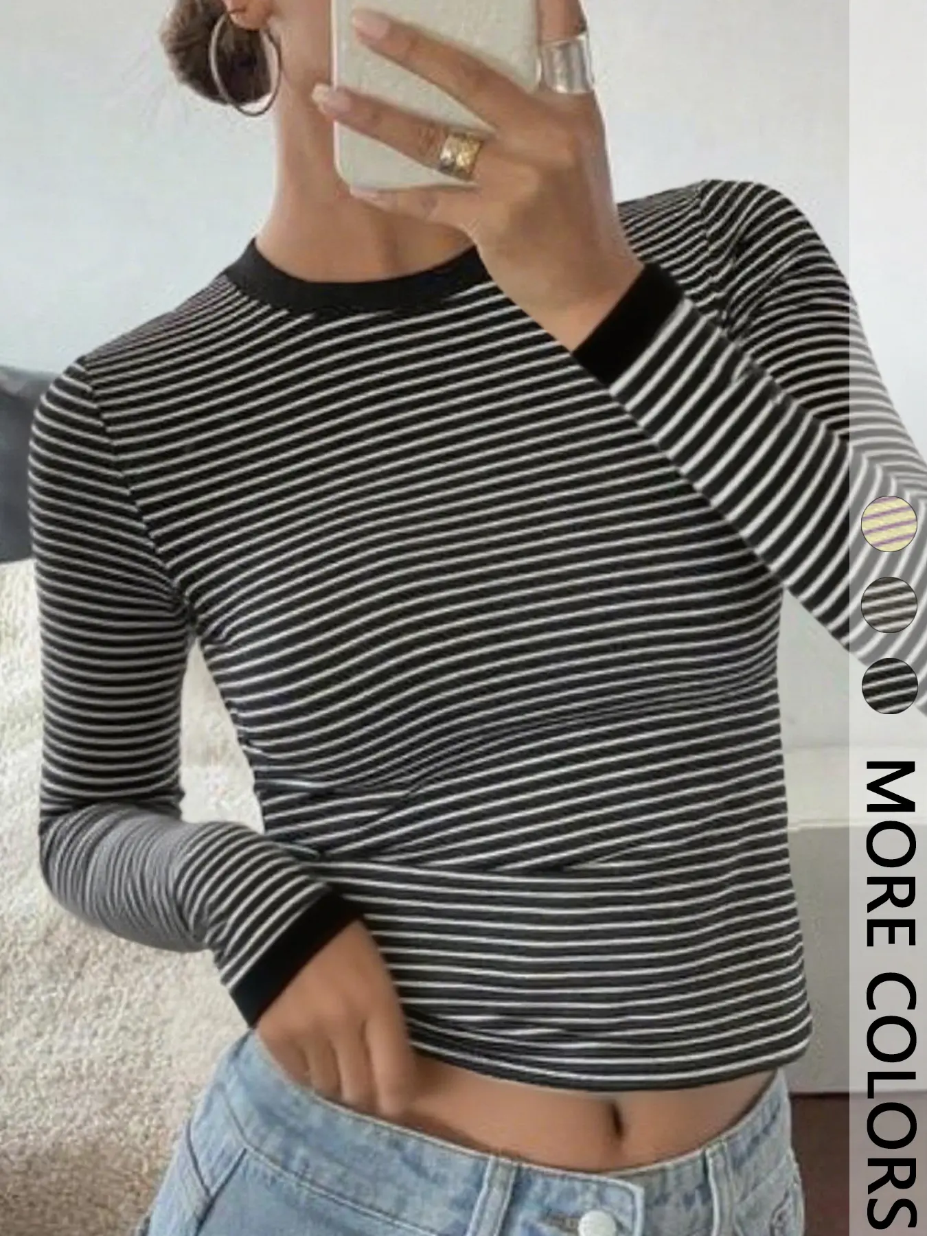 Women's Striped Slim-Fit Long Sleeve Casual Summer Top, Stylish and Comfortable Fashion Tee for Daily Wear #eleganttops #springtops #longsleevetops #clothingbasics #casualtops #shirtsforwomen #stripedshirts #womensgraphictees #womensgraphictee #plussizelongsleeve