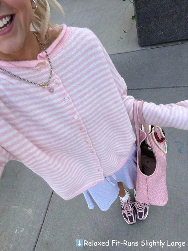 Women's Striped Cardigan, Casual Long Sleeve Knitwear for Fall & Winter, Women's Fashion Knit Clothing for Daily Wear