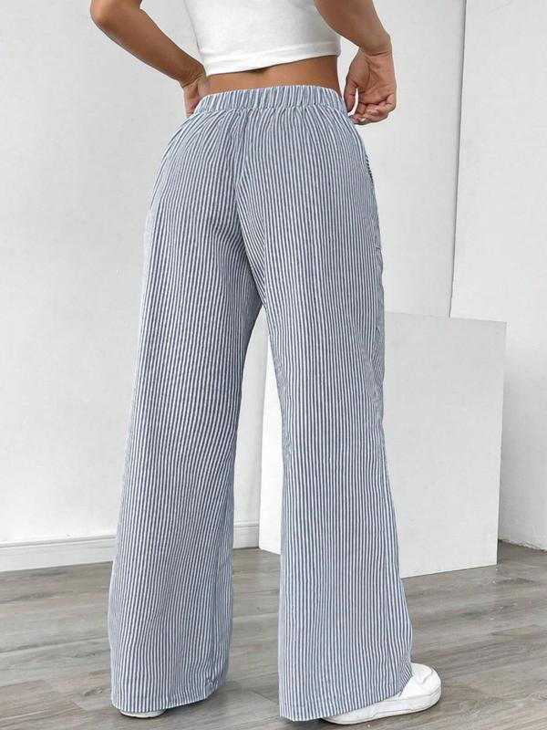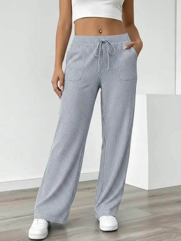 Women's Striped Wide Leg Pants, Casual Elastic Waist Home Wear, Fitted Long Regular Fit, Natural Waist, Stripe Pattern, Casual Fashion Pants