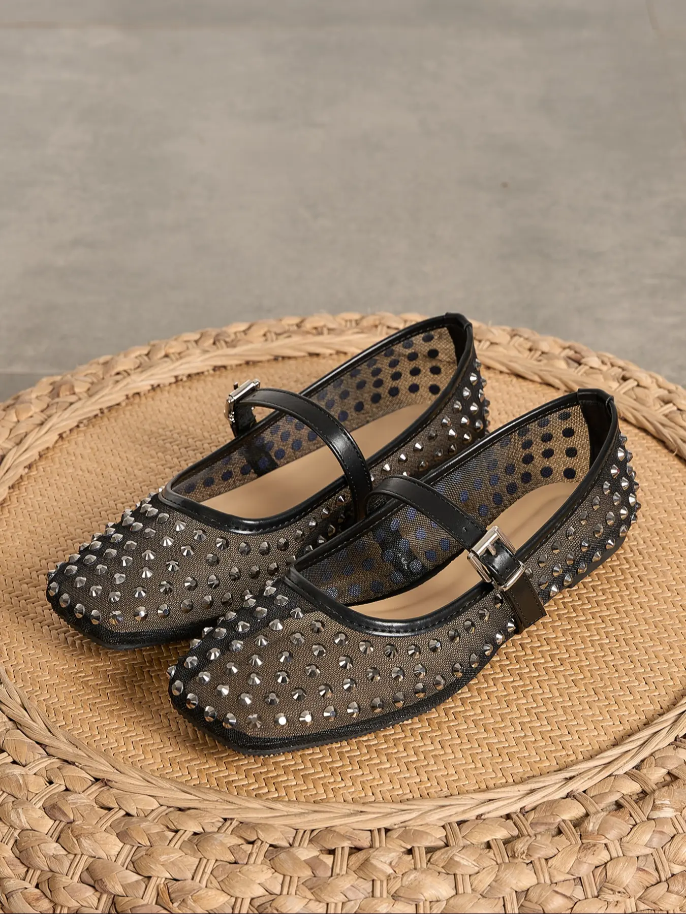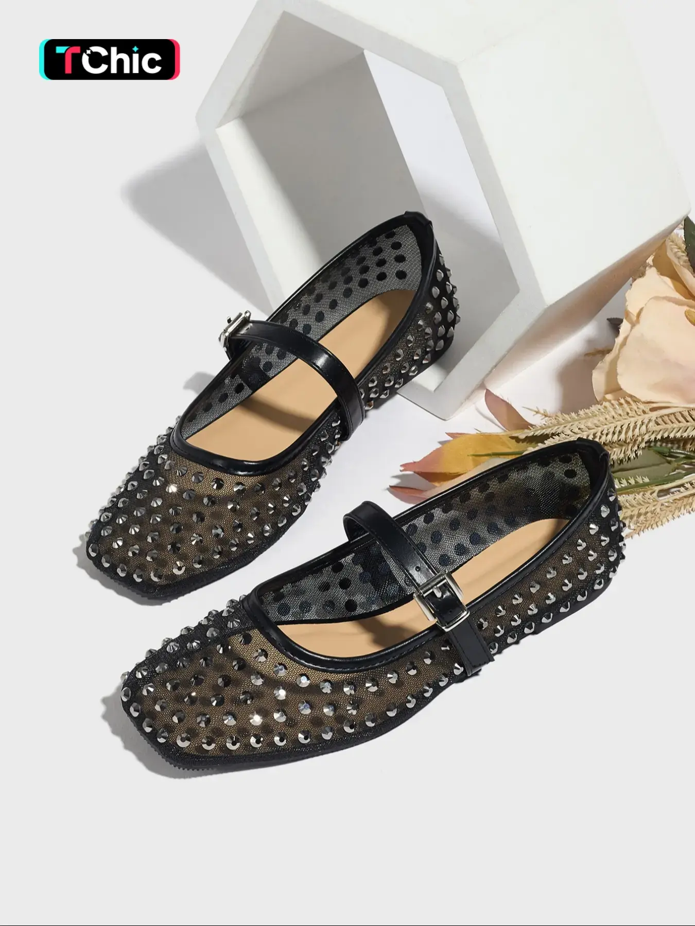These gunnite studded, Mary Jane flats are so precious!! They are mesh and so breathable. #tiktokshopholidayhaul #womensshoes #womensfashion #christmasgiftideasforher
