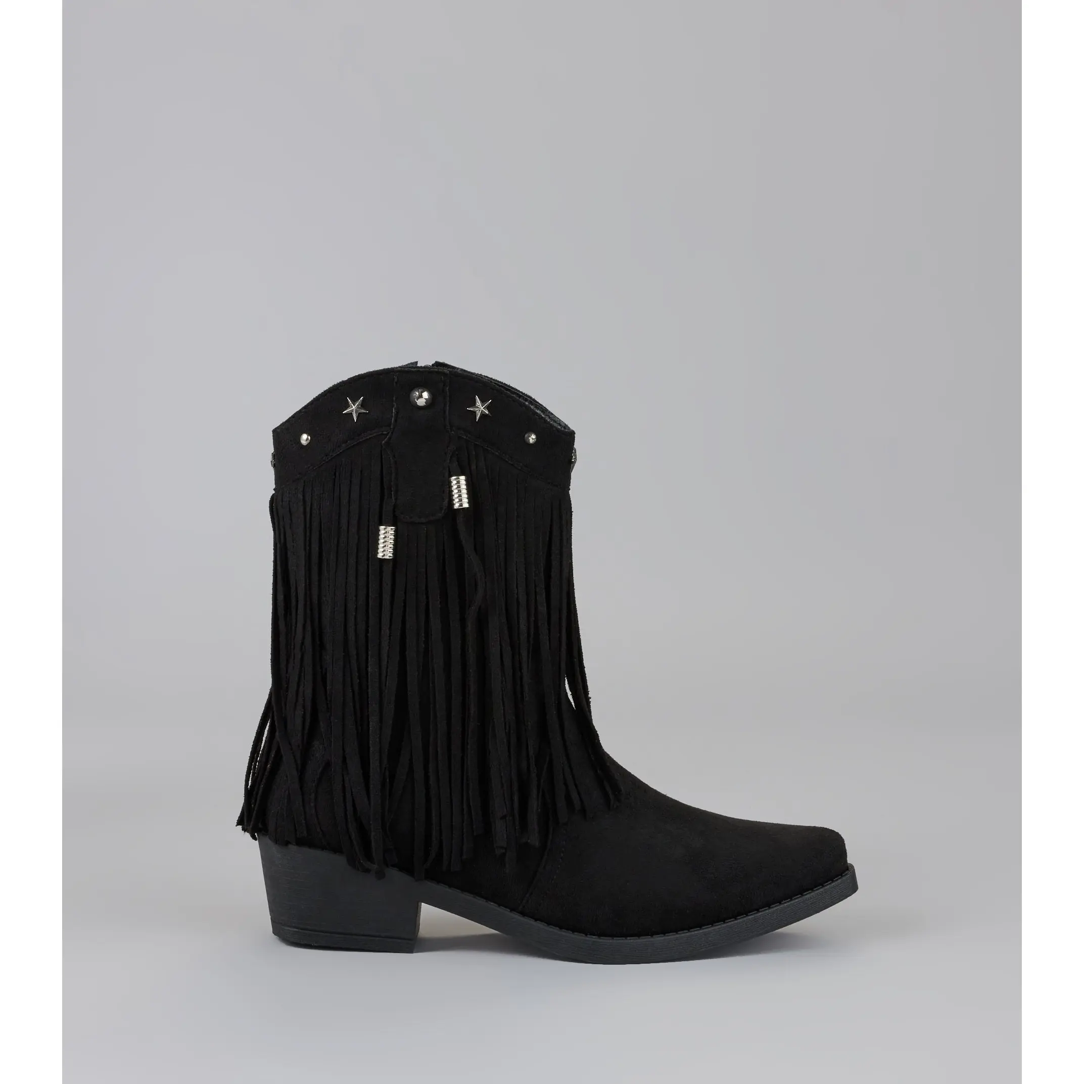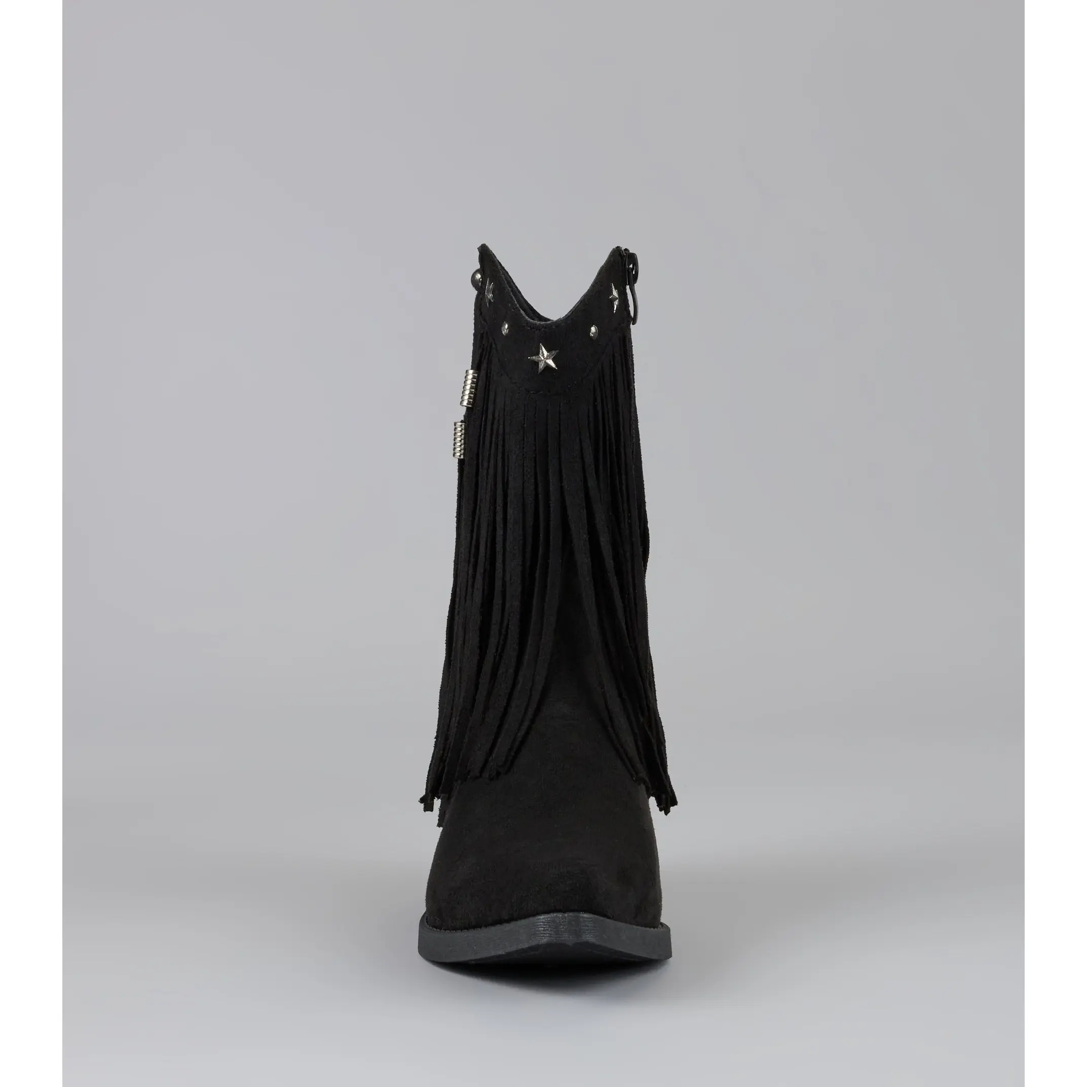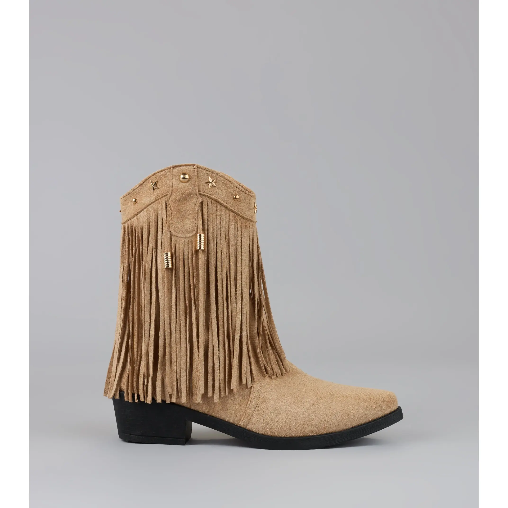 Catch the vibe before the beat drops—these cowboy boots bring the flair. Studded details and flirty fringe bring that festival-girl glam to your everyday lineup.