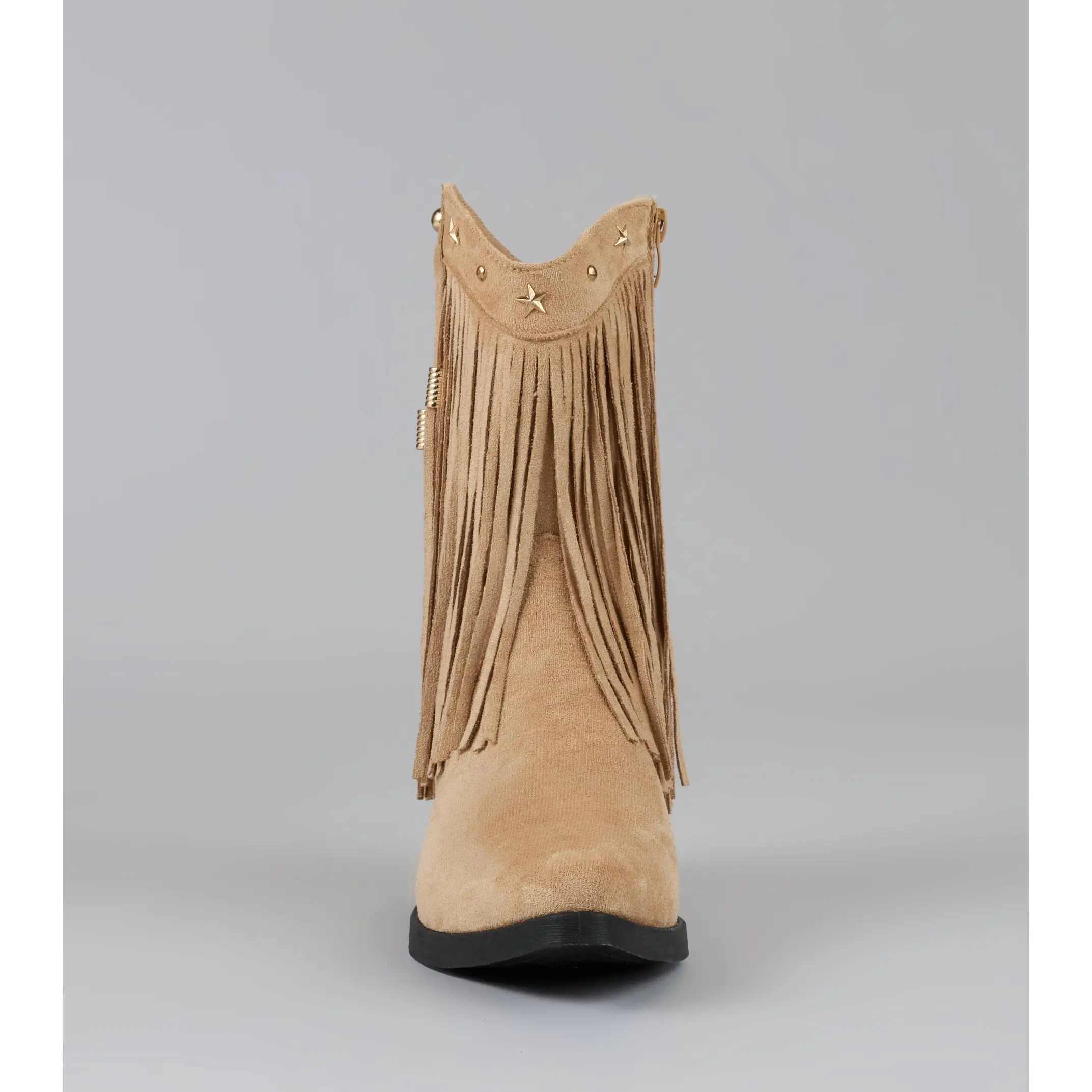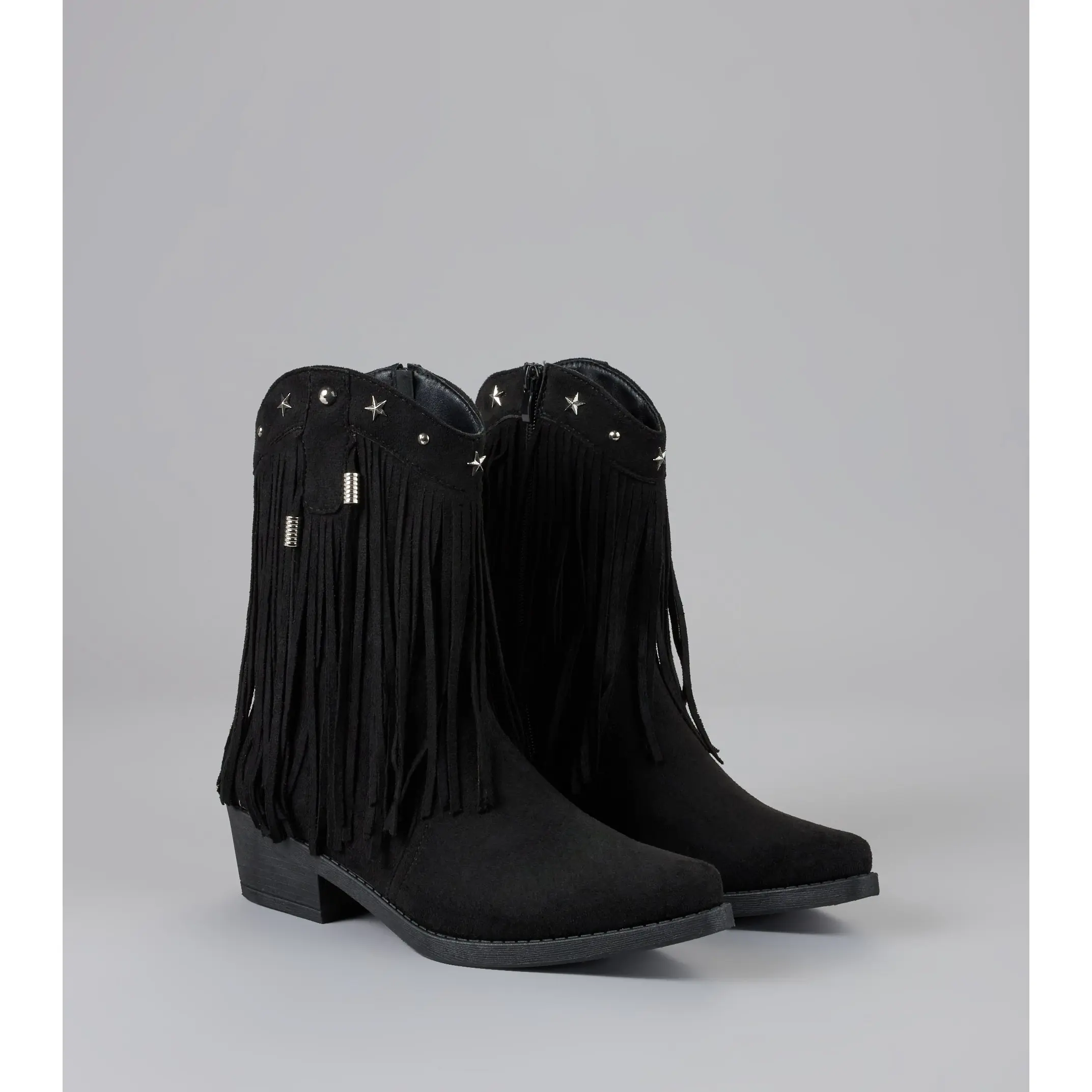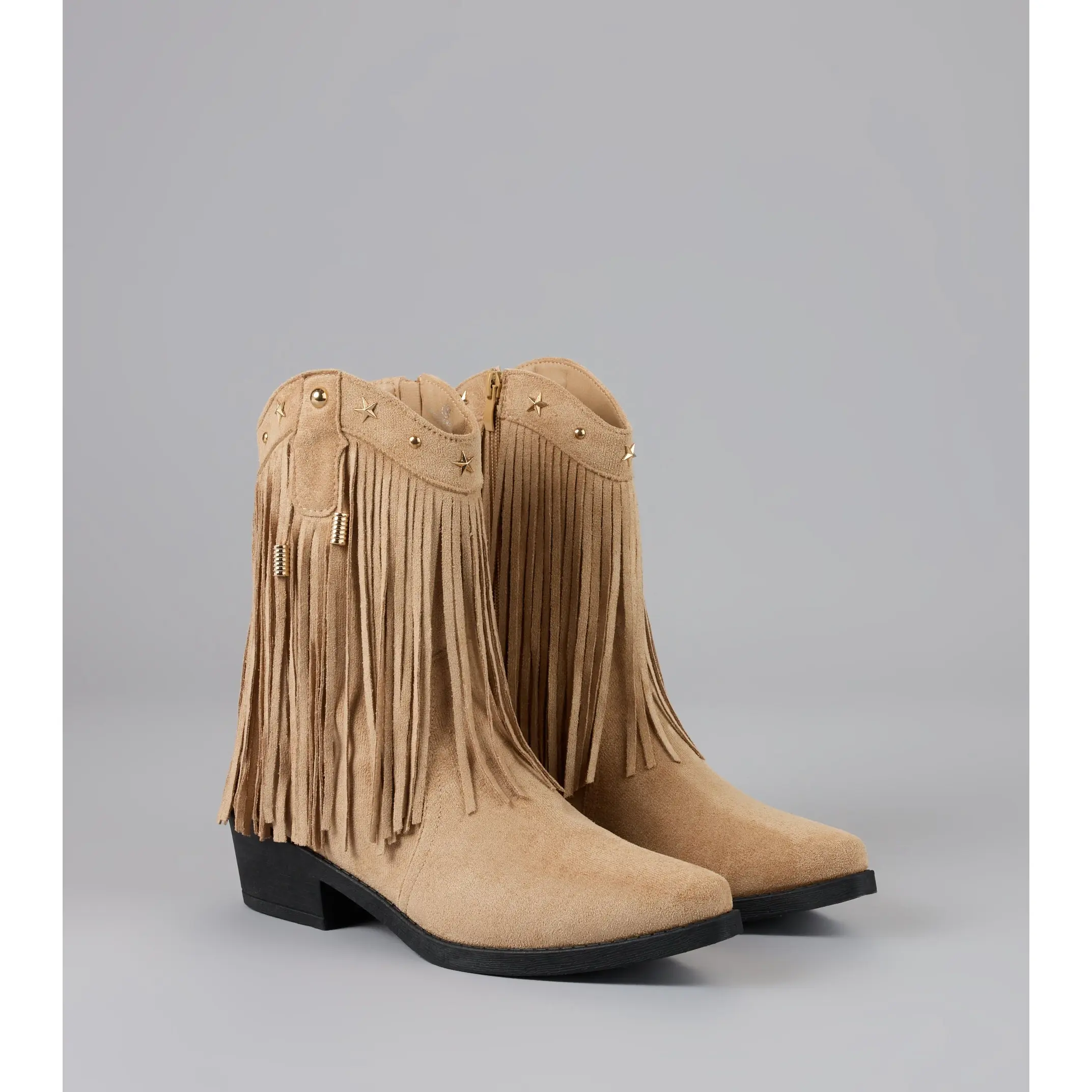 Catch the vibe before the beat drops—these cowboy boots bring the flair. Studded details and flirty fringe bring that festival-girl glam to your everyday lineup.