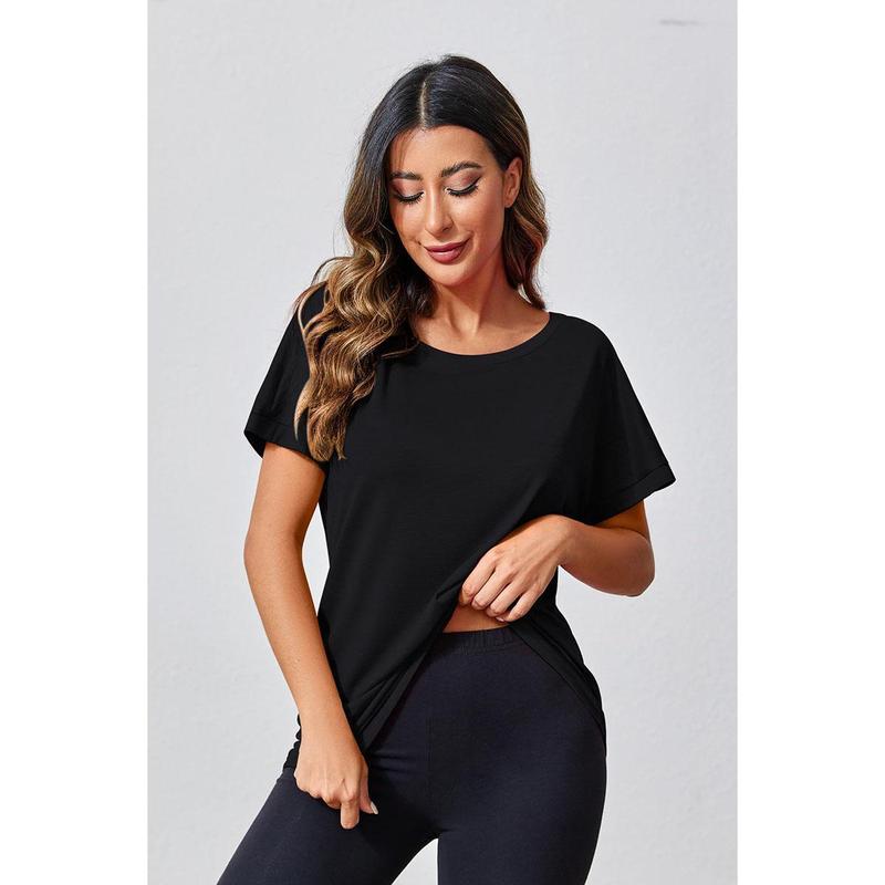 Womens Elegant Trendy Open Back Comfy Casual Loose Fitting Workout Casual Yoga T-Shirt Summer Gym Tee