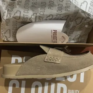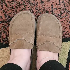Very nice shoes! Super soft and cushiony. Toe box is a little big, but the shoe stays on and is comfortable with socks. If you have a narrow foot, size down. Very nice quality suede and color is very pretty.
