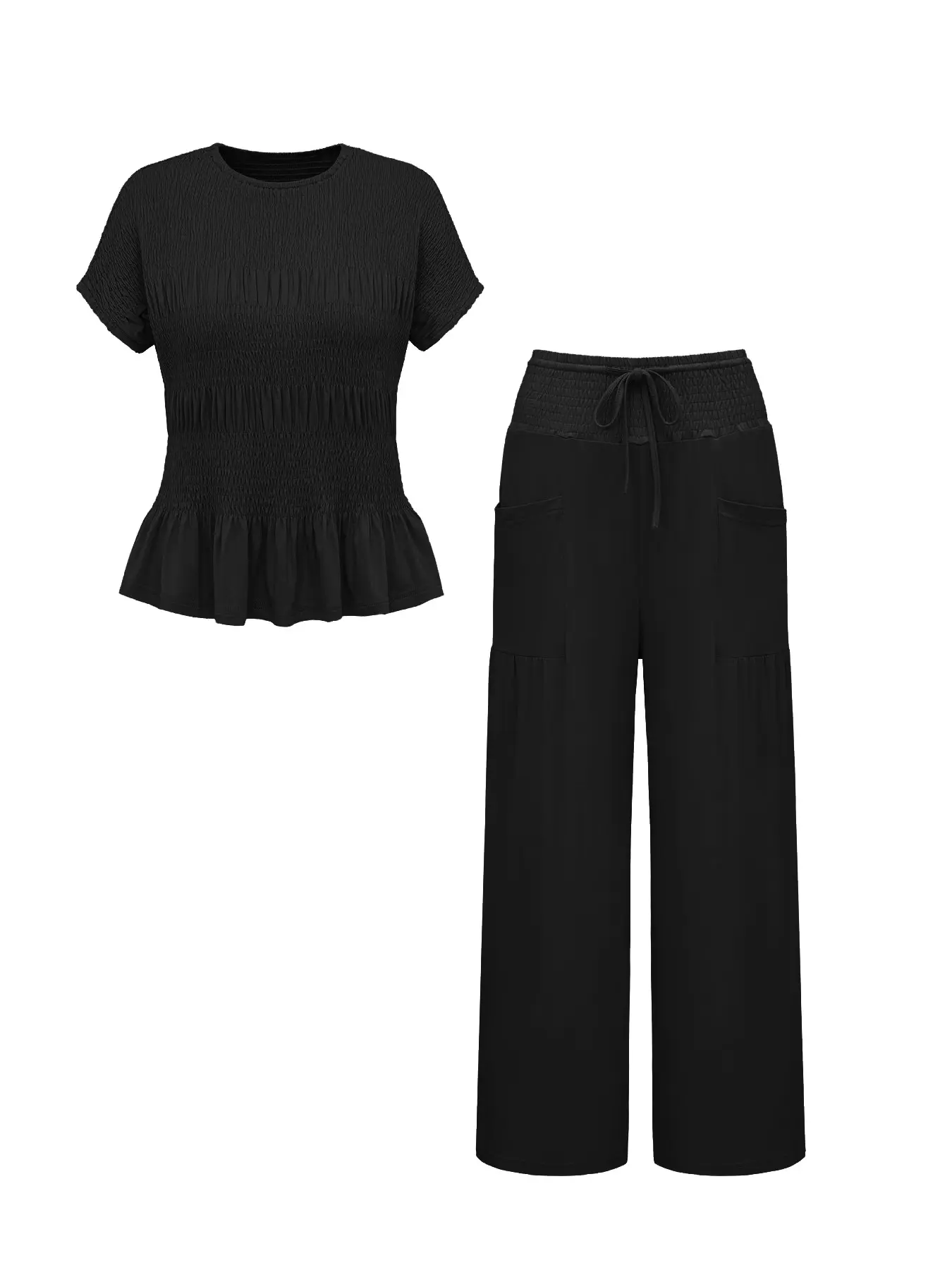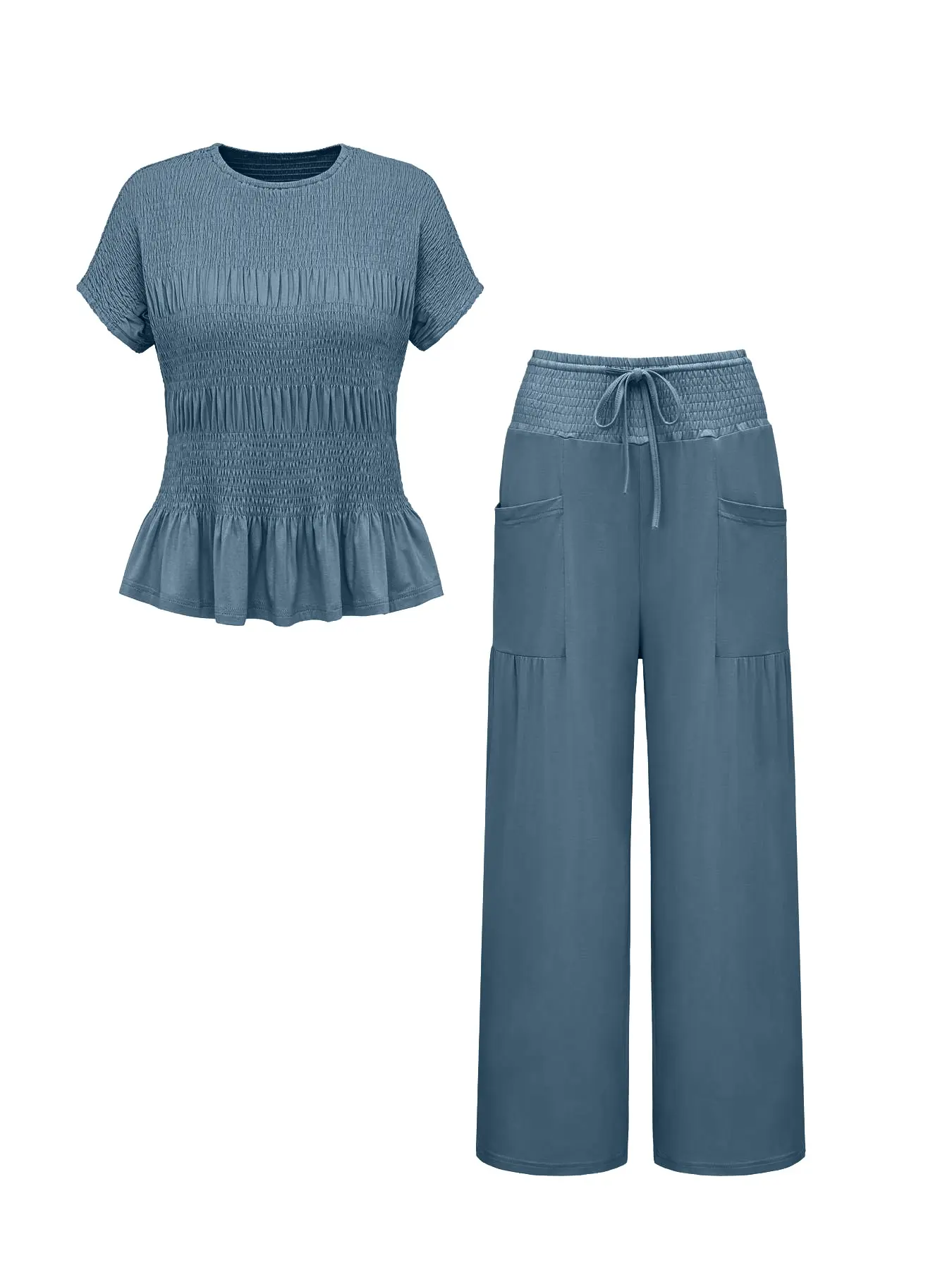 Women's Summer 2-Piece Set Top & Wide Leg Pants, Soft Breathable Fabric, High Waist Casual, Loose Fit with Pockets #pajamaset #twopieceoutfit #loungewearset #activewearset #womensjumpsuit #sportyjumpsuit #prettygardensweatsuit #shapewearjumpsuit #2pieceoutfit #3pieceswimsuit