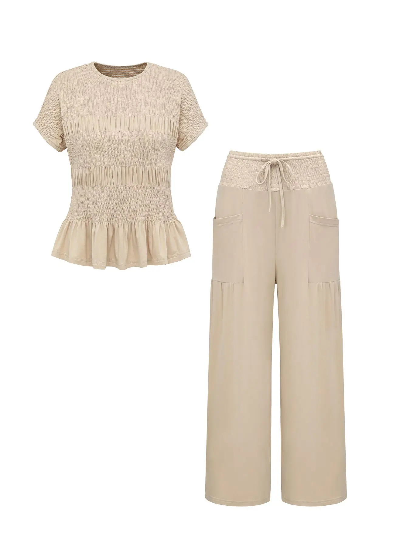 Women's Summer 2-Piece Set Top & Wide Leg Pants, Soft Breathable Fabric, High Waist Casual, Loose Fit with Pockets #twopieceoutfit #prettygardensweatsuit #2pieceactivewear #flaredleggingoutfits #pilatesoutfitideas #jacketandleggingsset #promjumpsuit #twopieceoutfitideas #swimsuitoutfits #tummycontroltwopiece