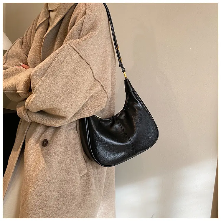 Vintage-Inspired Crescent Shoulder Bag – Adjustable Strap & Sleek Vegan Leather