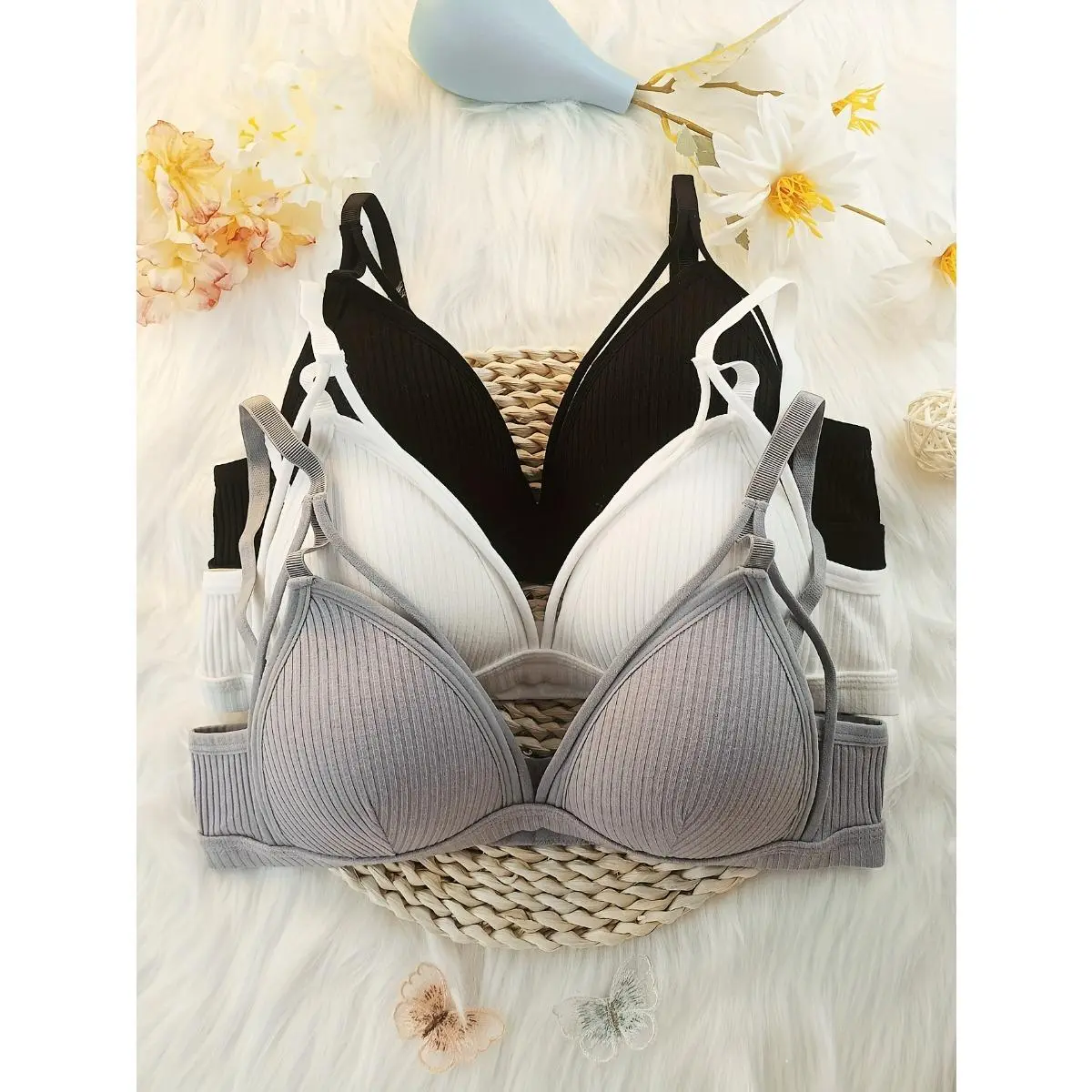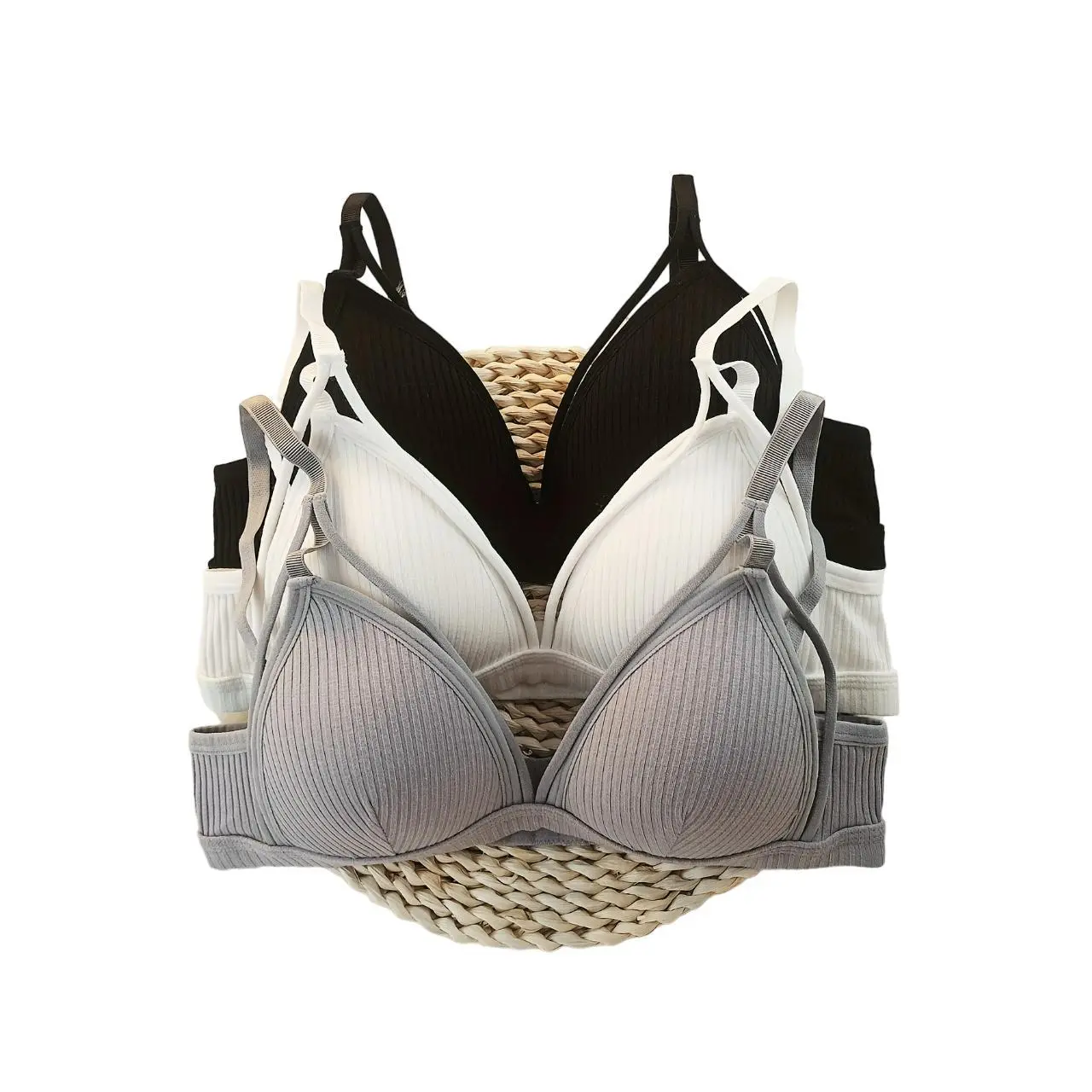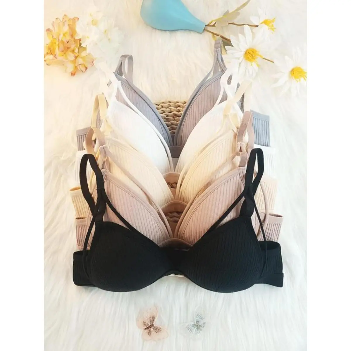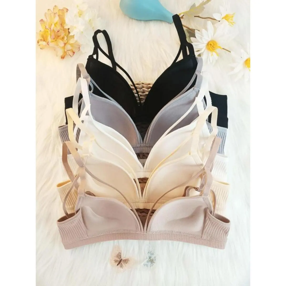 Women's Summer Basic Solid Wireless Bra, Lingerie for Women, Casual Comfortable Adjustable Strap Push Up Bra for Summer Daily Wear, Softness Lingerie Outfit for All Seasons Cotton Fabric Strapless Bras Elegant Medium Knit