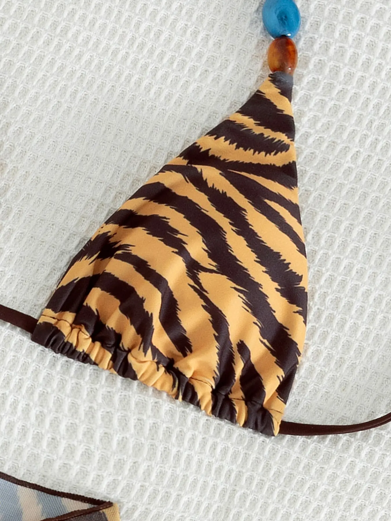 【Unique Tiger Print】: Showcase an all-over tiger stripe pattern, setting this bikini apart from ordinary swimwear options.