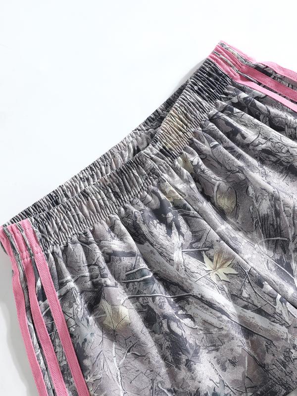 Women's Summer Camo Print Shorts, Casual Loose-Fitting Elastic Waist, Side Striped Design, Outdoor Wear, Daily Use