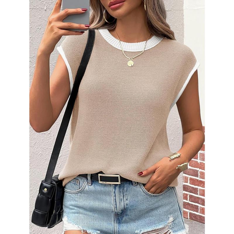 5. Saodimallsu Womens Summer Cap Sleeve Knit Tops Casual Sleeveless Sweater Vest Crew Neck Color Block 2025 Trendy Tank Top