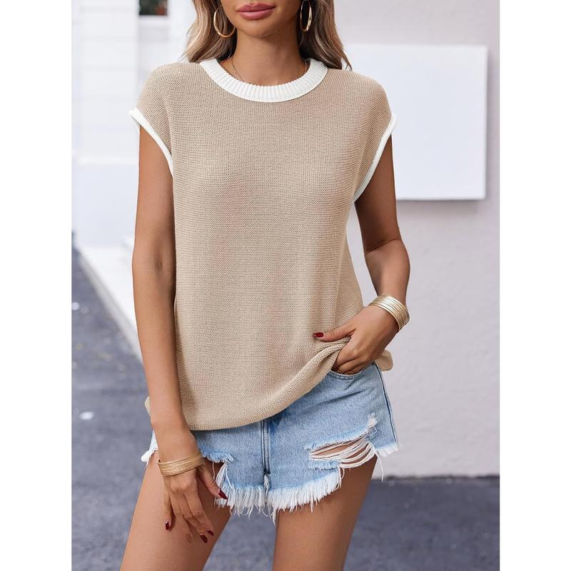 Saodimallsu Womens Summer Cap Sleeve Knit Tops Casual Sleeveless Sweater Vest Crew Neck Color Block 2025 Trendy Tank TopSaodimallsu Womens Summer Cap Sleeve Knit Tops Casual Sleeveless Sweater Vest Crew Neck Color Block 2025 Trendy Tank Top