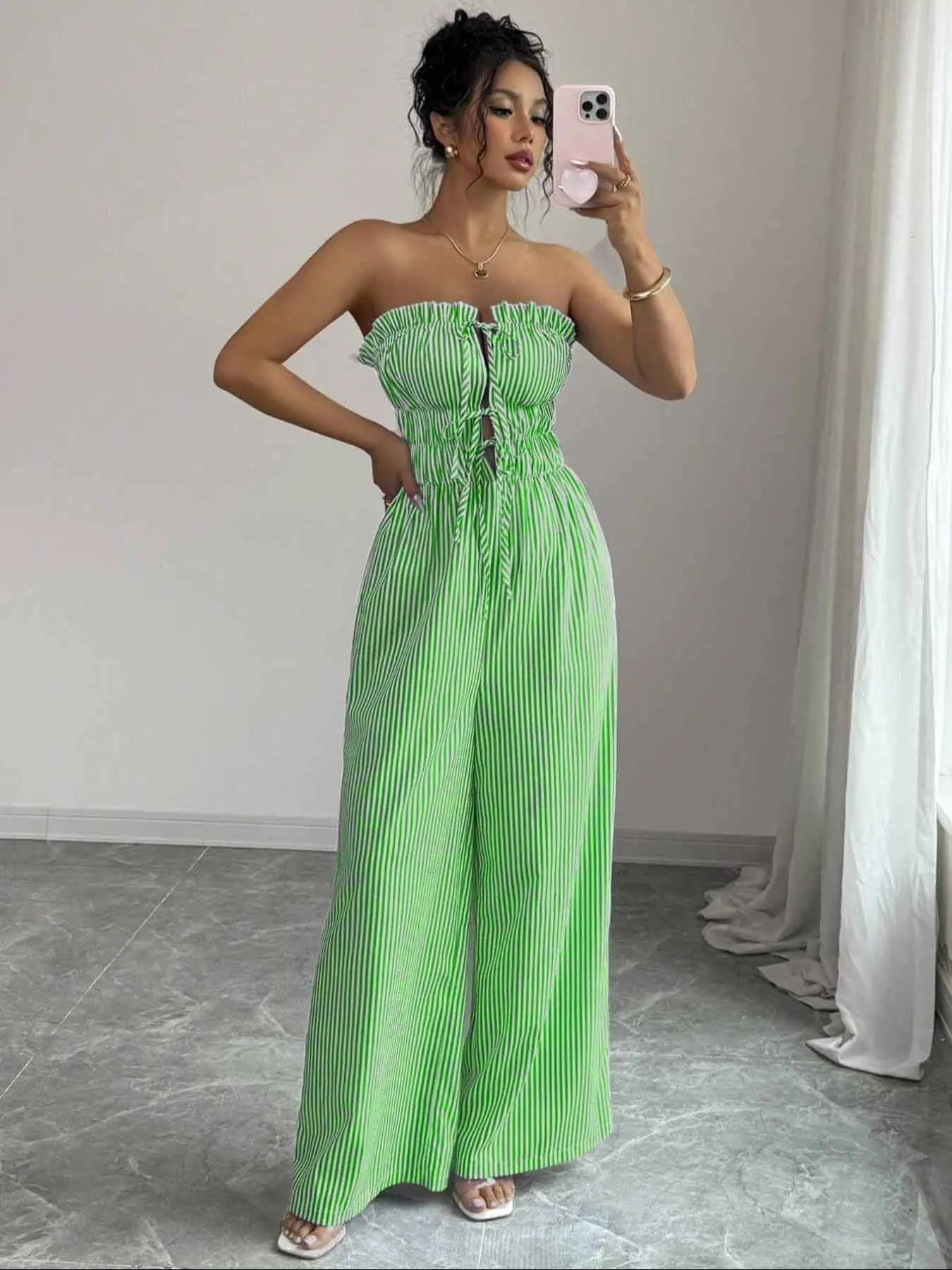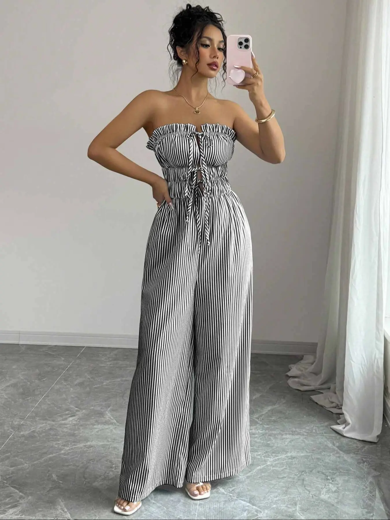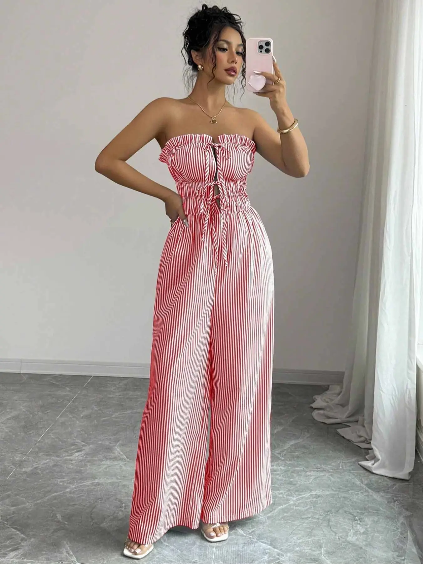Women's Summer Casual Striped Bandeau Wide Leg Jumpsuit #tiktok #tiktokshop #tiktokmademebuyit #fyp #women