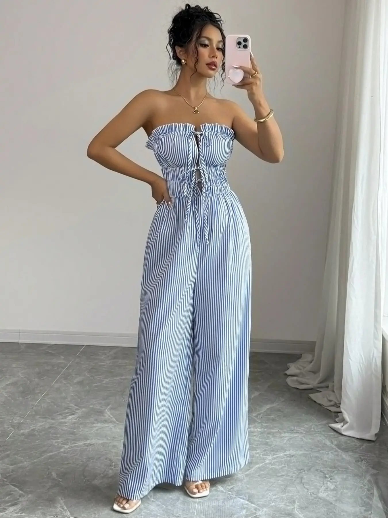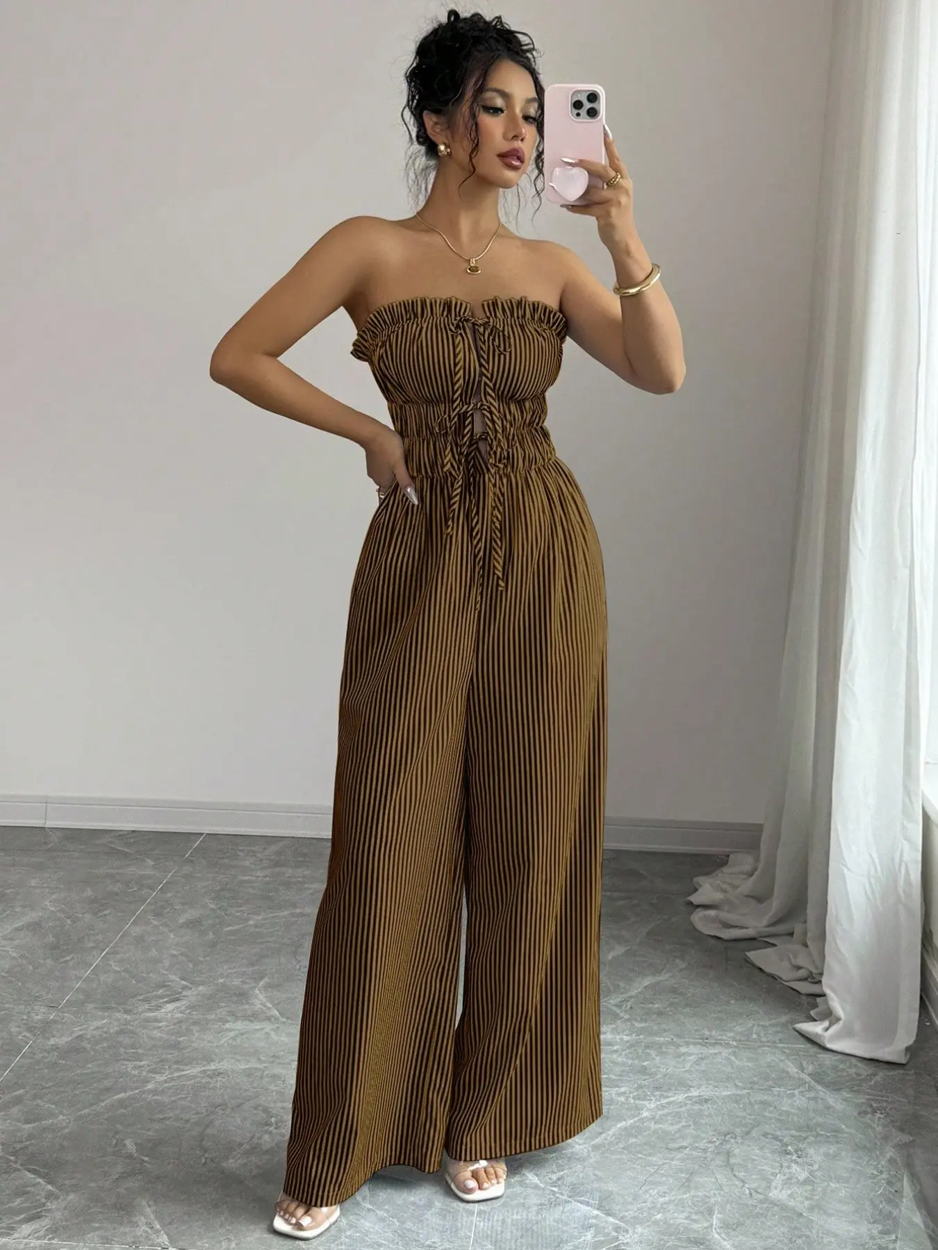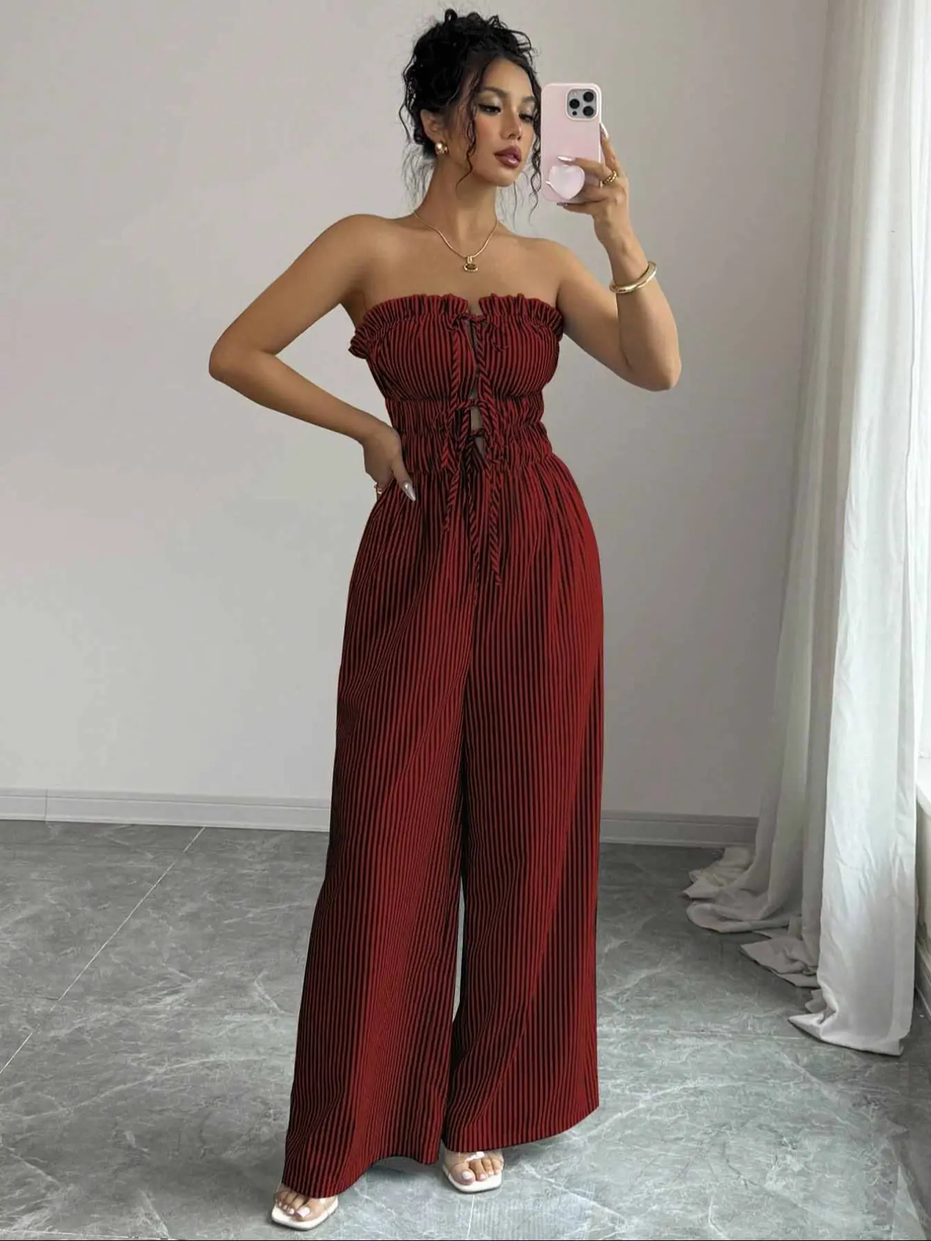 Women's Summer Casual Striped Bandeau Wide Leg Jumpsuit #tiktok #tiktokshop #tiktokmademebuyit #fyp #women