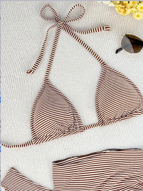 Women's Summer Casual Swimwear Set, Striped Print Bikini and Matching Skirt, 3 Piece Beach, Fitted Style, Perfect for Vacation
