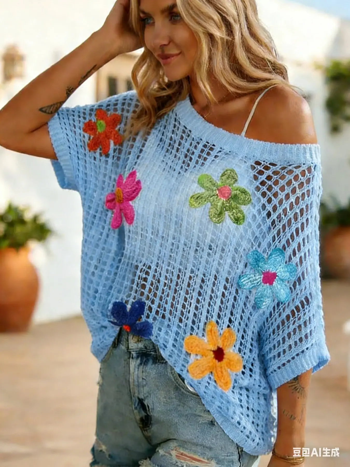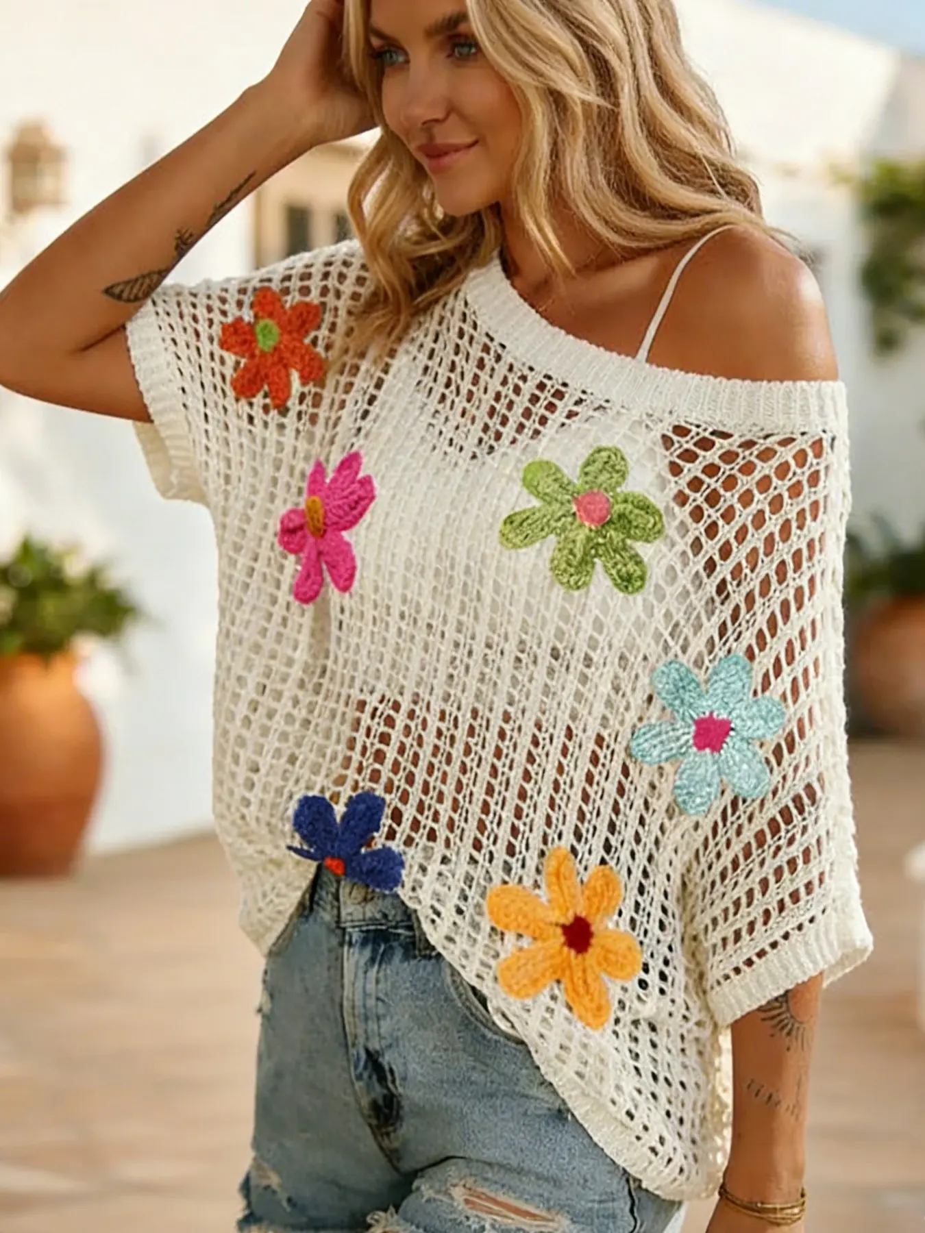 【Crochet Flowers】: Features vibrant crochet flowers, adding a unique and eye-catching touch to your summer outfit.