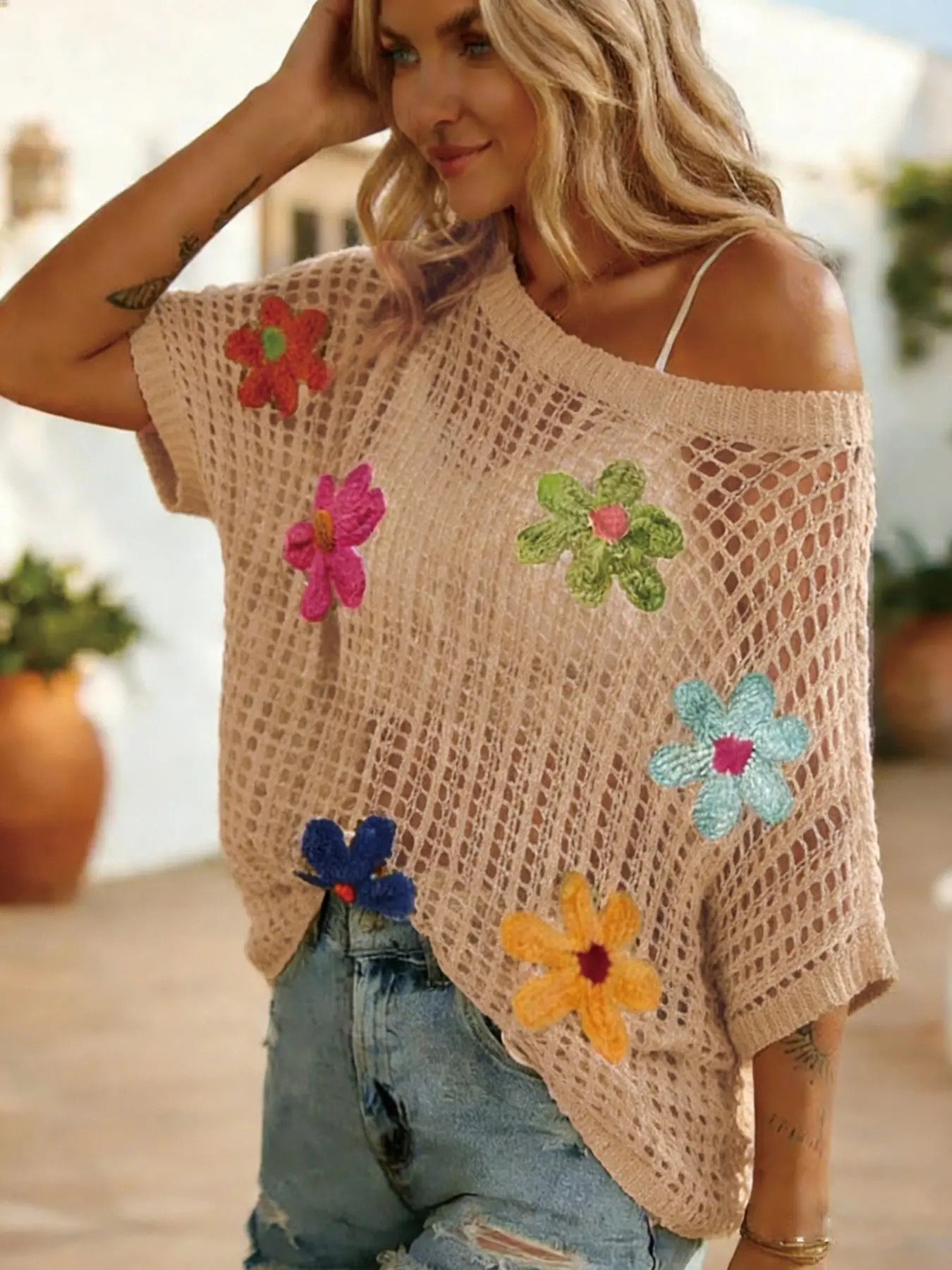 Blusa de verano para mujer con tejido crochet floral y estilo boho, perfecta para crear looks ligeros, frescos y relajados. Su diseño holgado y transpirable la hace ideal para la playa, vacaciones, salidas casuales o días calurosos. Combínala fácilmente con shorts, jeans o faldas para lograr un outfit bohemio, femenino y súper cómodo. Una prenda versátil que le da un toque especial a cualquier look de verano. #ModaBoho #BlusaDeVerano #OutfitDePlaya #TikTokShopCreatorPicks #TikTokShop