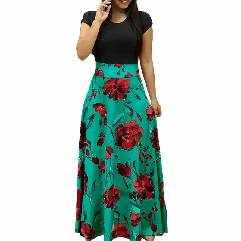 5. Women's Dress Summer Women's Summer Floral Long Dress Printed Bohemian Style Dress Short Sleeve Party Slim Fit Long Beach Vacation Dress Elegant Prom Dress