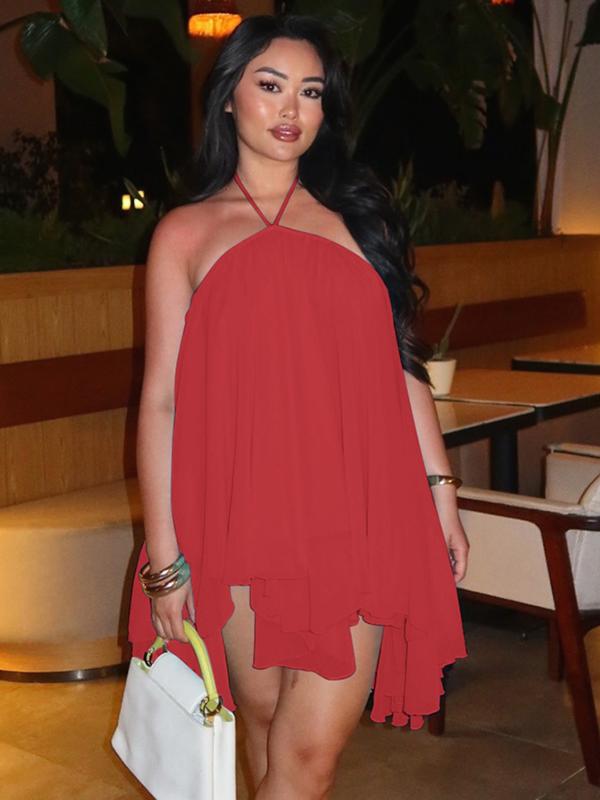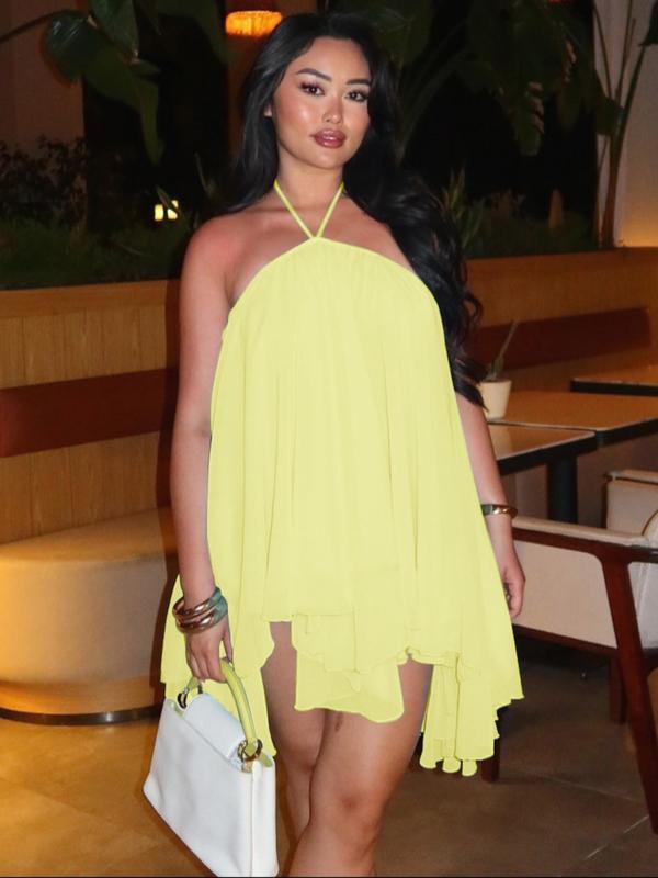 Women Chic Summer Halter Sleeveless Backless Party Club Chiffon Basic Midi Dress #TikTokShopBlackFriday #TikTokShopCyberMonday #spotlightfinds #ootd/  #clothing