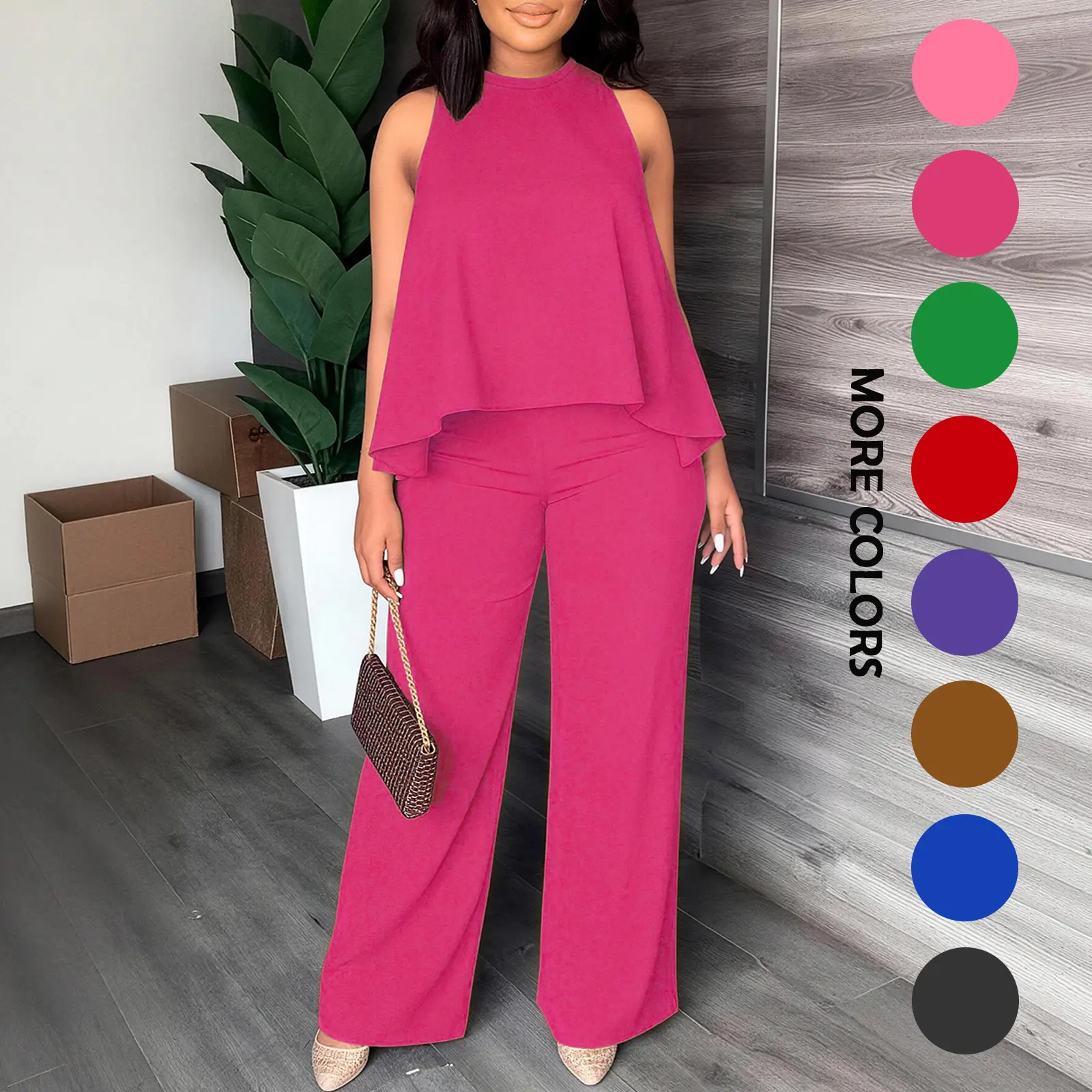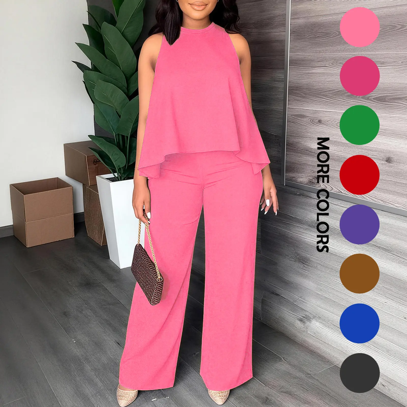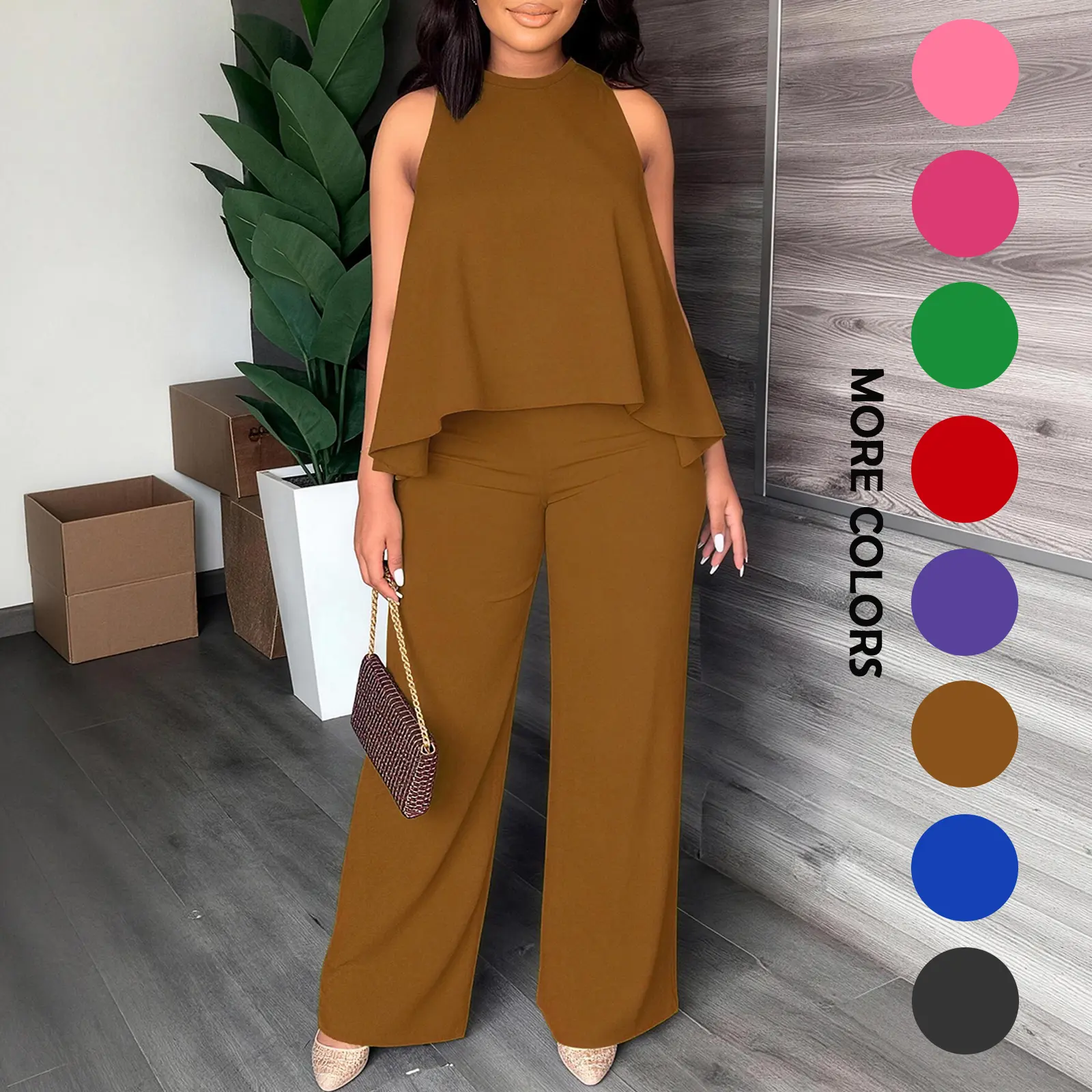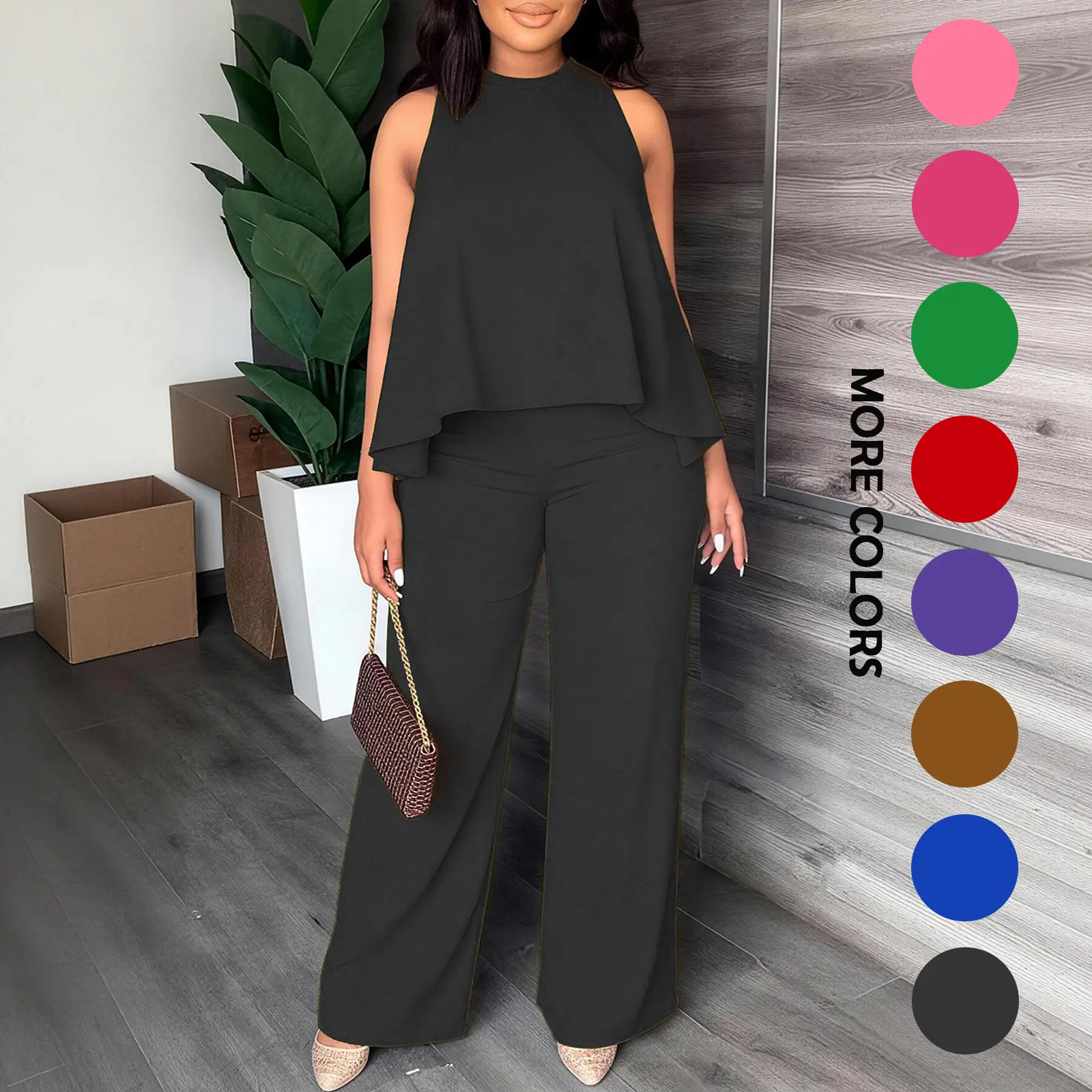 Effortless chic one-and-done outfit! This matching set features a flattering sleeveless cape top and high-waisted wide leg pants, designed to slim your figure and elevate your everyday style with zero effort. A must-have for your casual and dressy wardrobe!