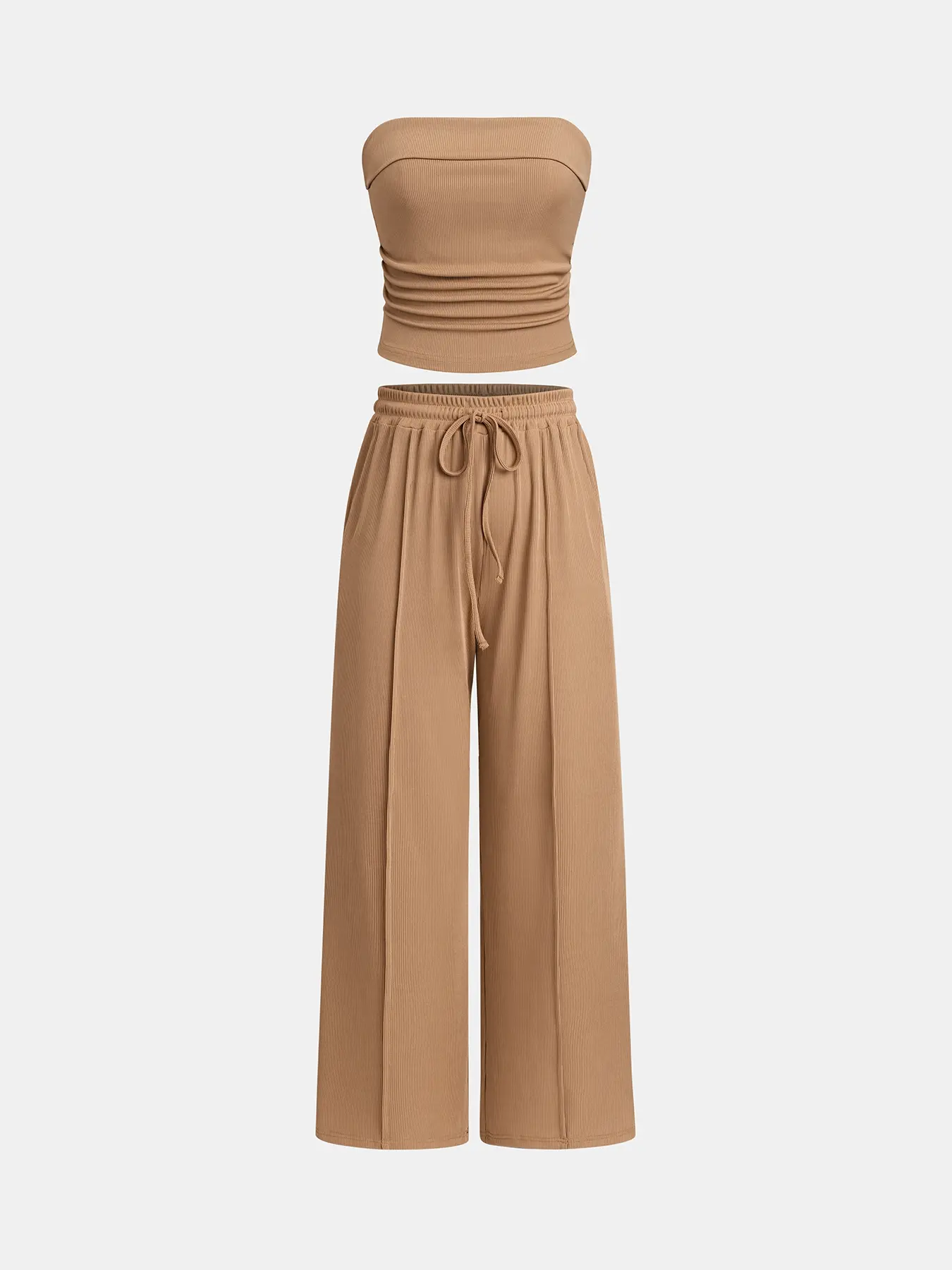【Two-Piece Coordination】: This set comes complete with both a crop tube top and matching wide-leg pants for seamless styling.