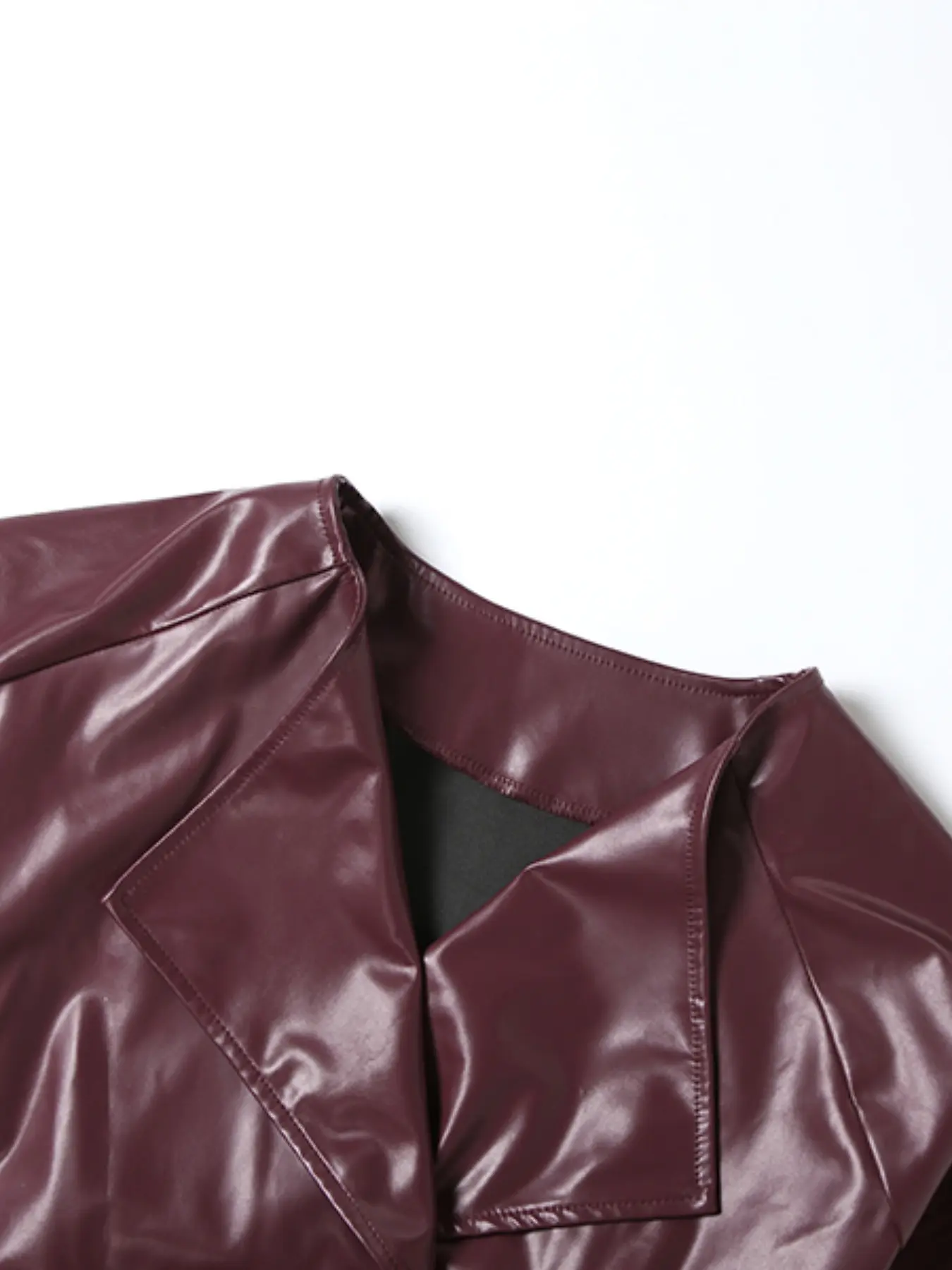 怐PU Leather Fabric怑: Crafted from PU leather, this outerwear offers a modern edge while maintaining a moderate thickness for comfort.