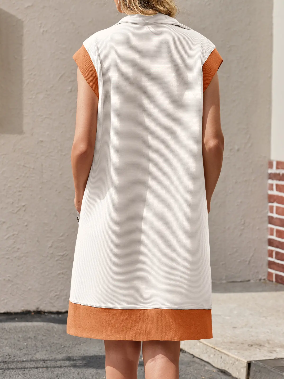 ✨ Design Features: This summer mini dress combines style and function with a chic half-zip neckline, bold contrast color details, and practical pockets. Cap sleeves flatter the arms while the loose fit and side slits enhance mobility and comfort.