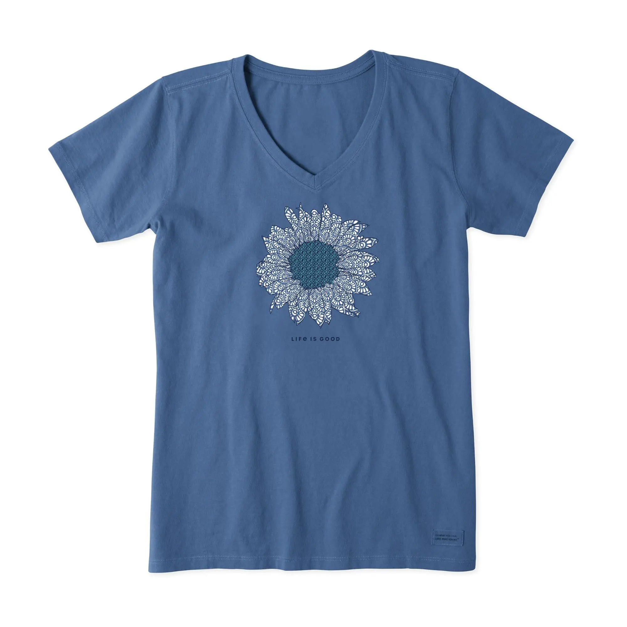 Embrace a laid-back vibe with the Life is Good French Sunflower crusher V-neck tee, featuring a classic fit that skims the body for a relaxed feel. This tee is garment washed for softness, making it an ideal choice for both everyday wear and leisurely weekends. From Life is Good.