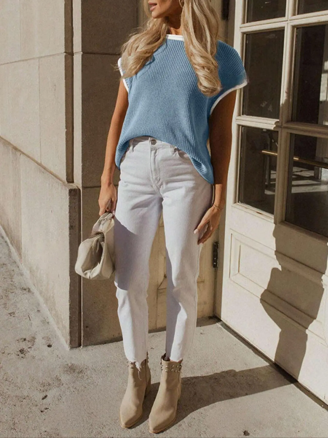 Women's Sweater Pullover, Casual Cap Sleeve Basic Crew Neck Fitted Knit Top for All Seasons, Fashion Women's Knitwear for Daily Wear