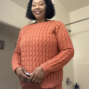 What a cute outfit and awesome fit. Butt looks good. The front is all baggy and weird in the crotch area. I got it at a huge discount! What a great set! I bought two but I need more, can be worn off the shoulder or regular. I’m 5’3 135 I got a small. Very cozy and super warm! Perfect for winter.