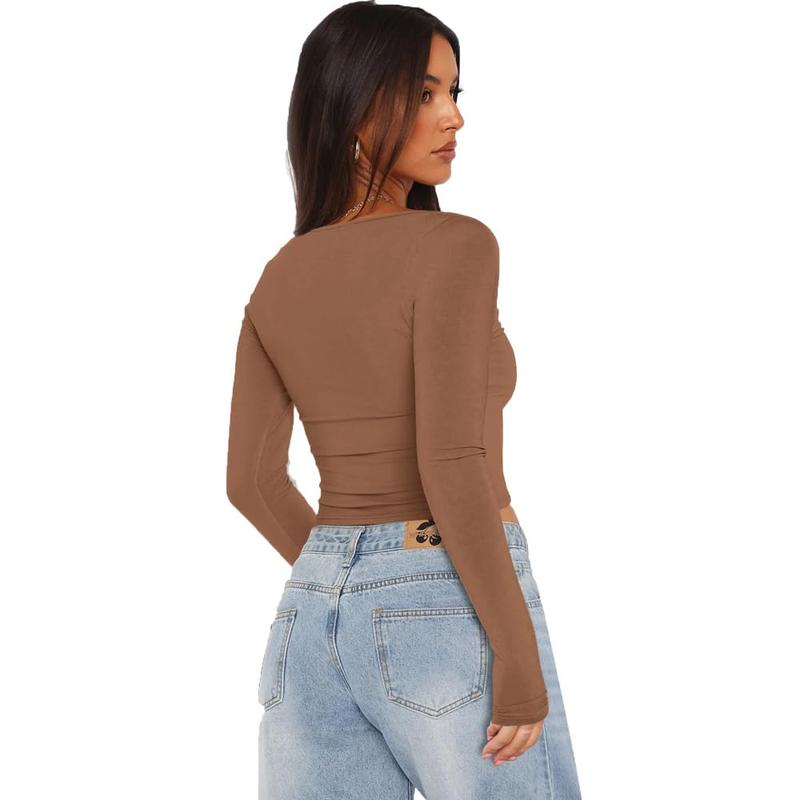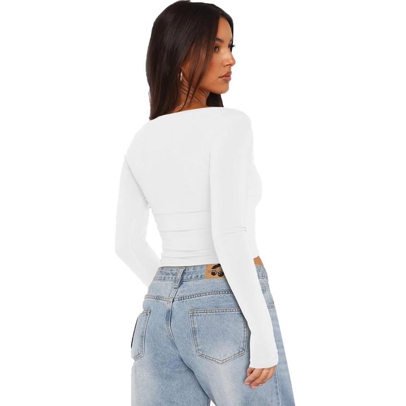 ·【Y2K Design】: This long sleeve tee shirts for women is featuring long sleeve slim fit, low neckline and cute sweetheart neck, ruched, solid color,cute and stylish can be worn with different items to show different fashion styles.
