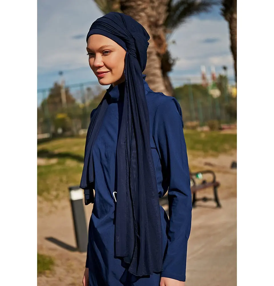 5. Women's Swim Cap Shawl Hijab - MB2402 Navy Blue