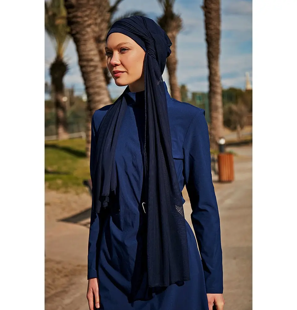 Women's Swim Cap Shawl Hijab - MB2402 Navy Blue