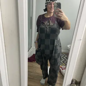 This romper is giving me cute AGGRESSION!!! It’s so adorable, I’m in love! I’m 5”7 205lbs and I got the XL and it fits perfectly oversized. Now I need all the colors! The material feels sturdy and the pockets are HUGE! 🎉❤️