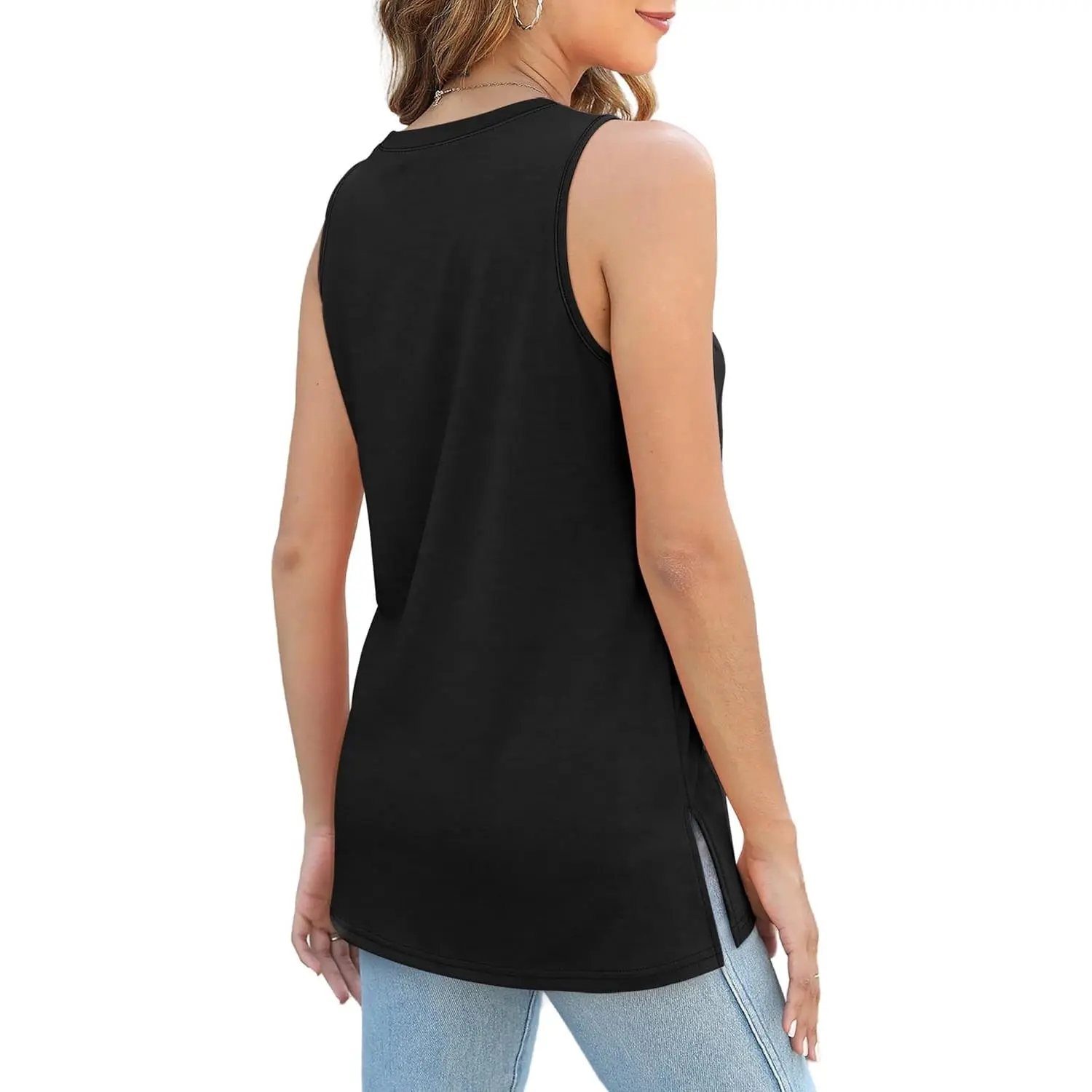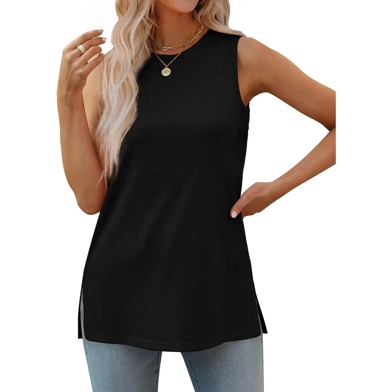 ·Feature-- Classic crewneck design, sleeveless shirts with side split. Loose fit, basic, simple casual style chic and never out of date. Solid color & cute floral print for your choice