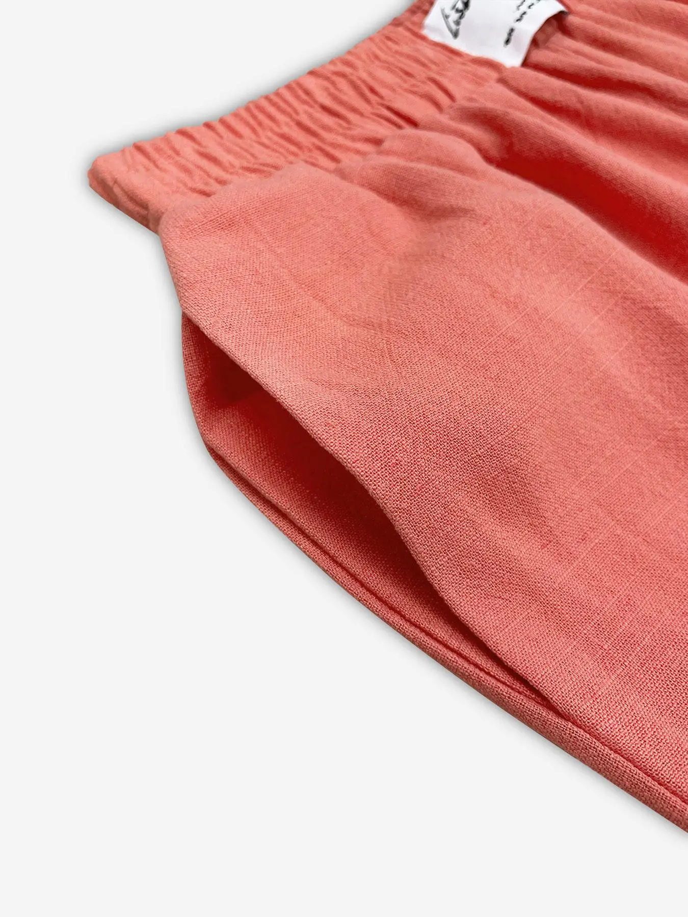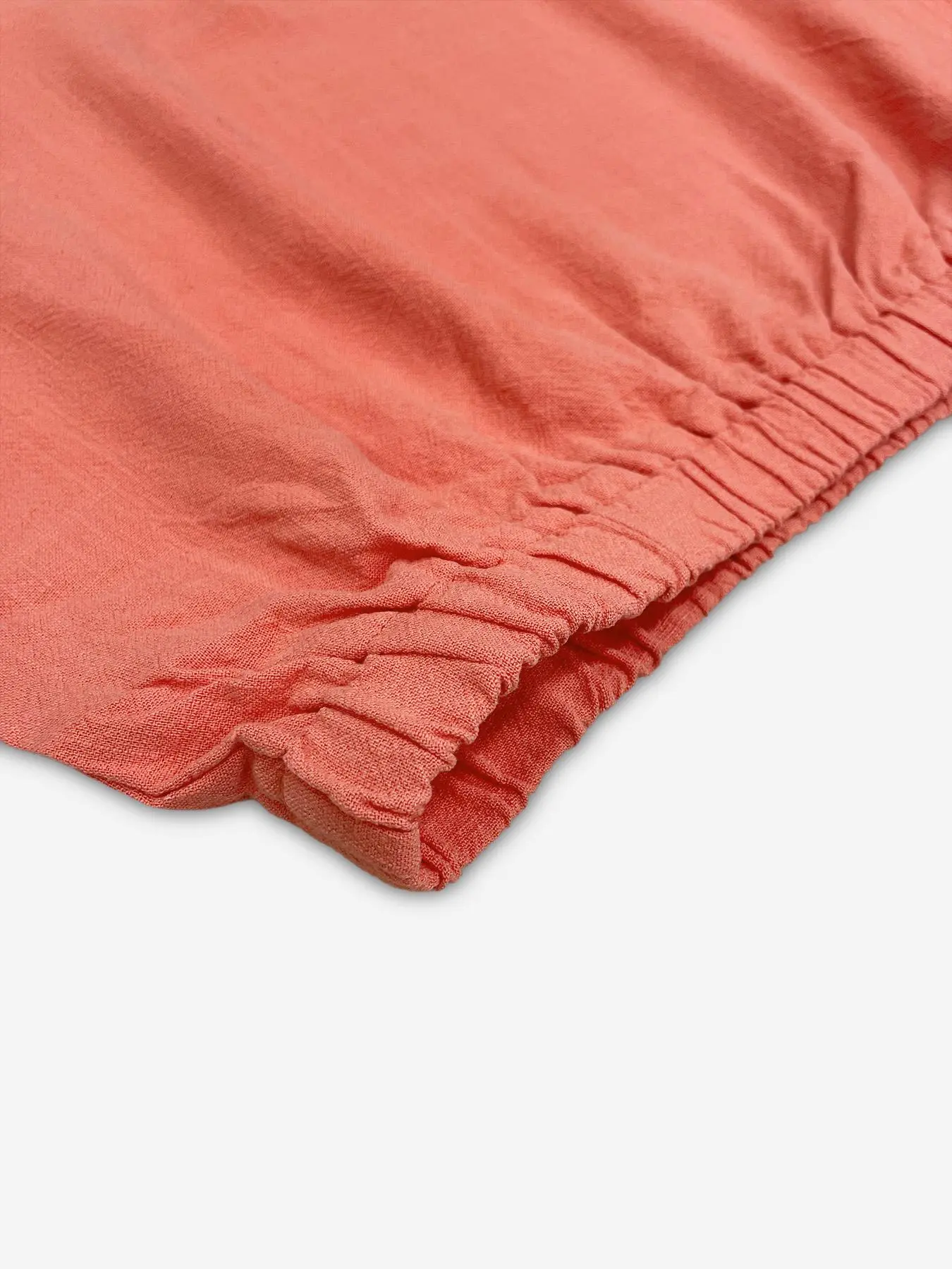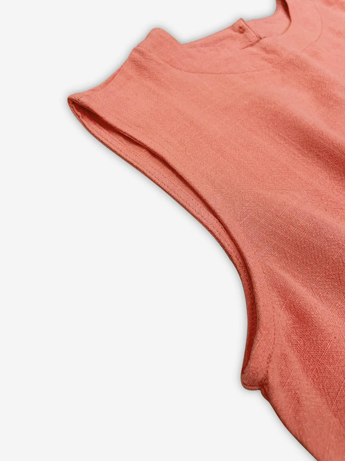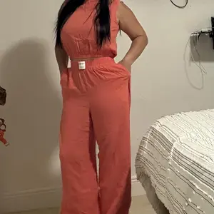 Super comfortable two-piece linen set. The colors are so beautiful that everyone notices this outfit. I loved it so much that I bought it in two colors, green and peach. Both are stunning and look amazing on.