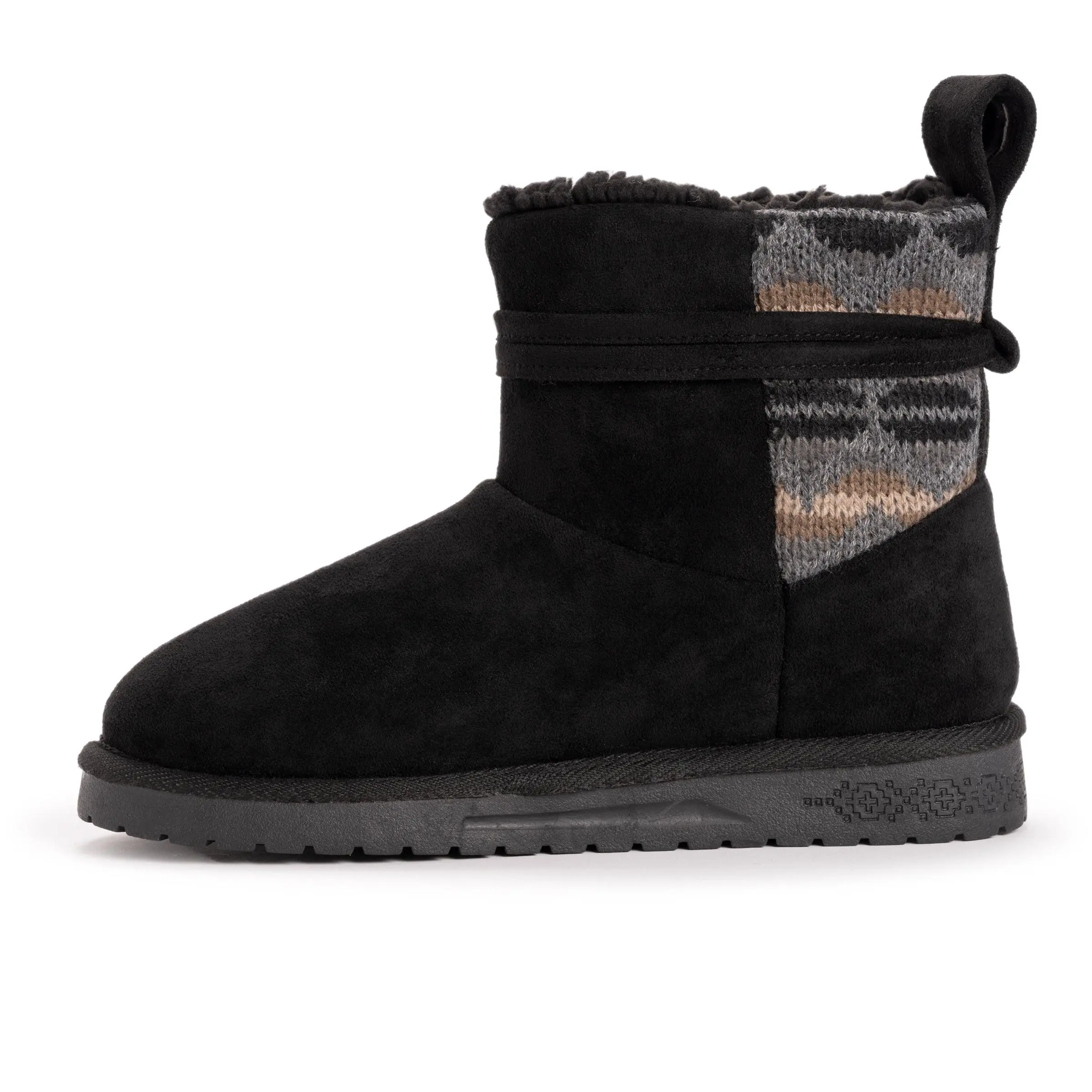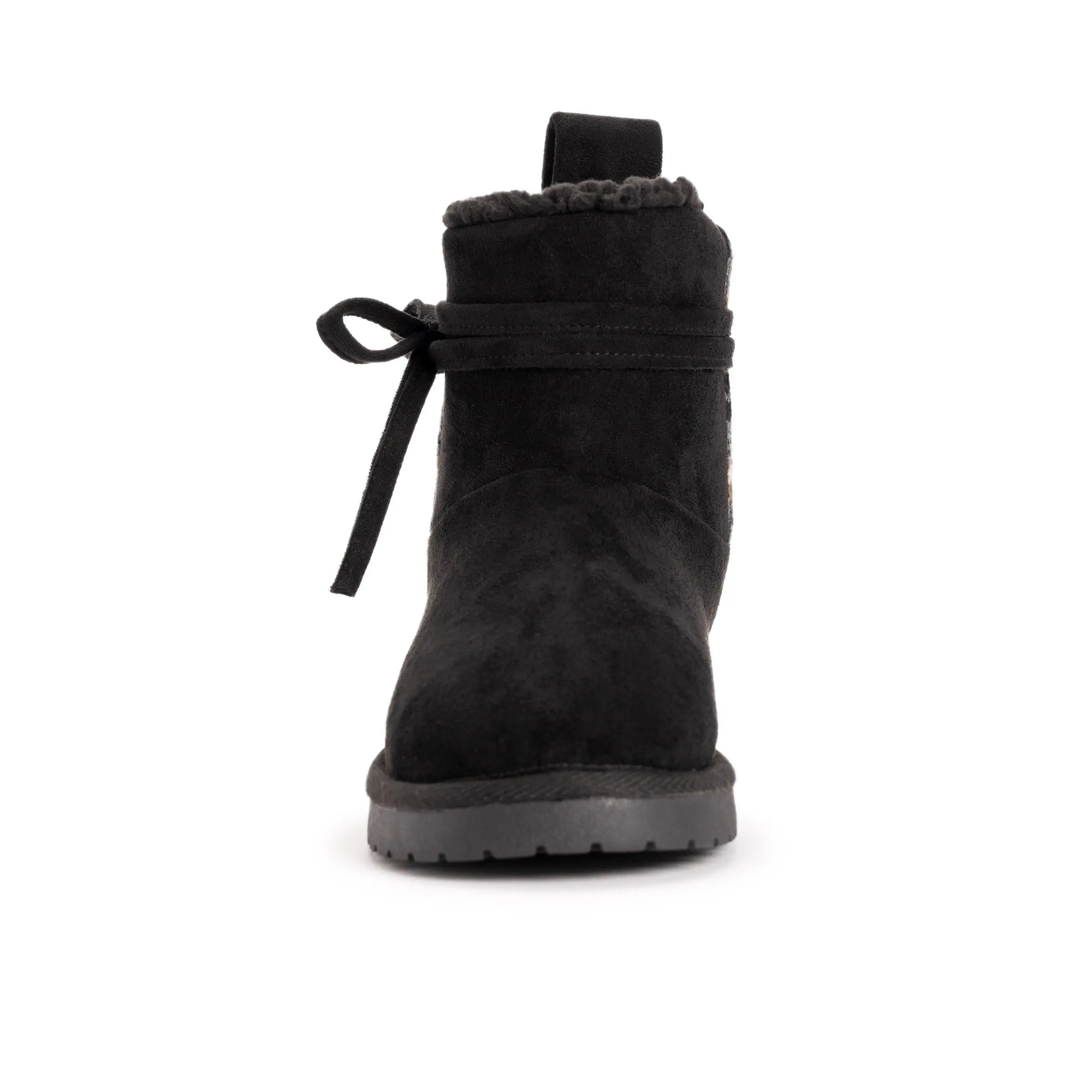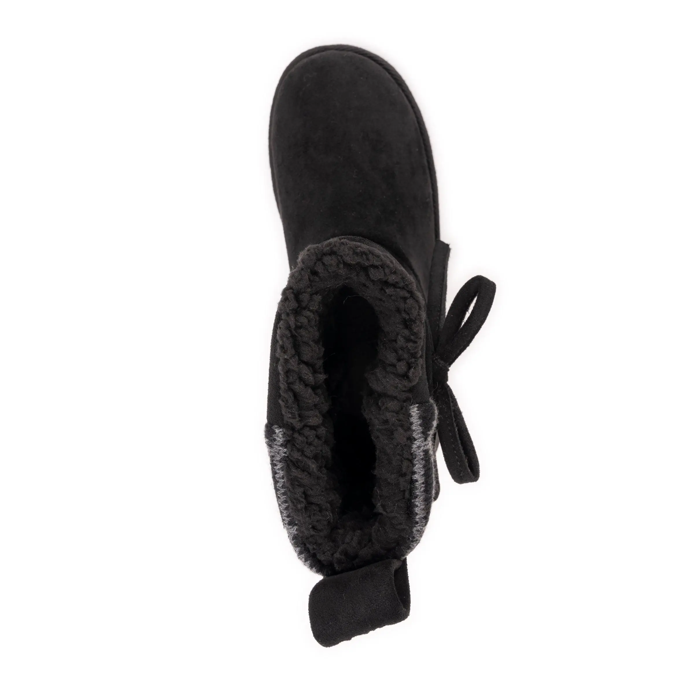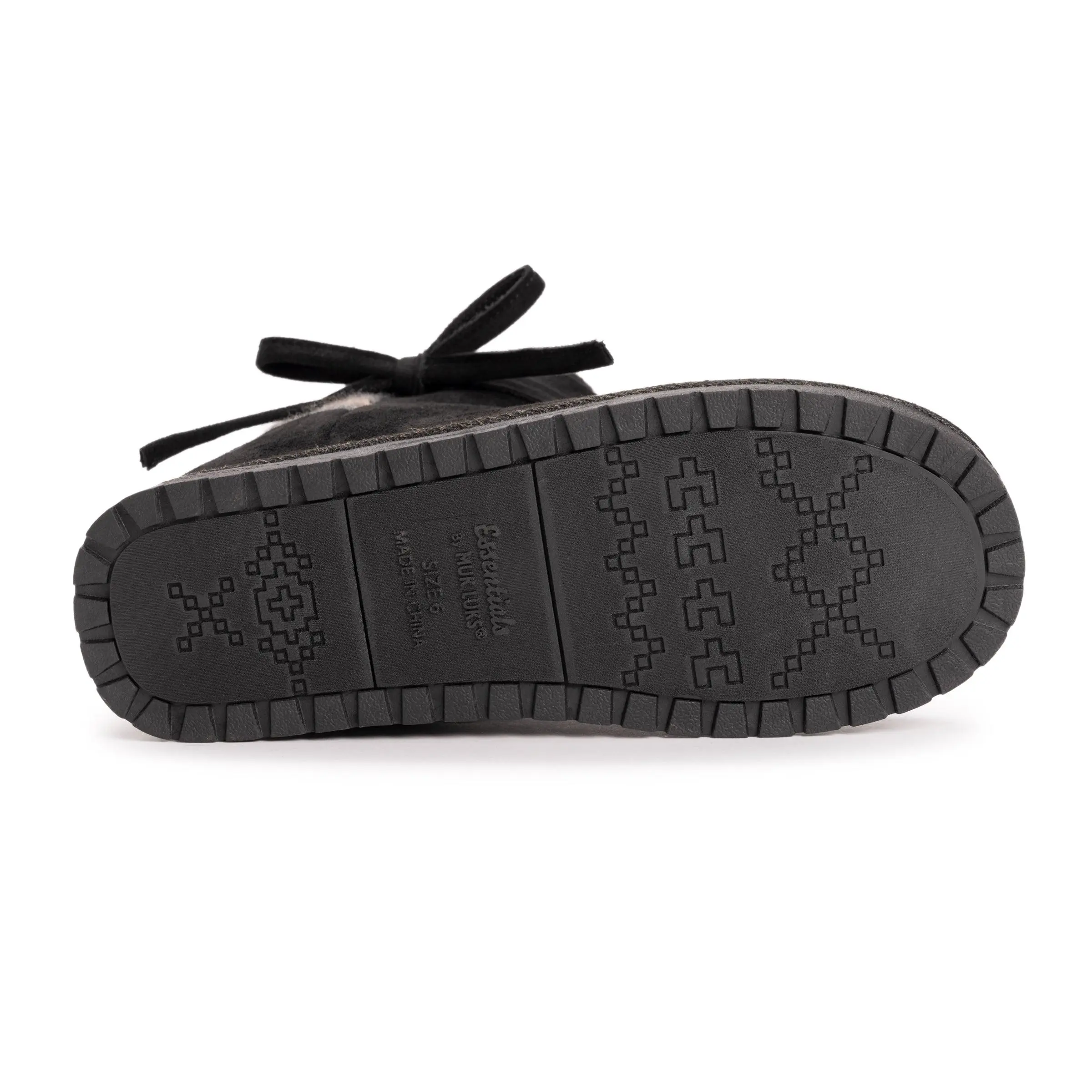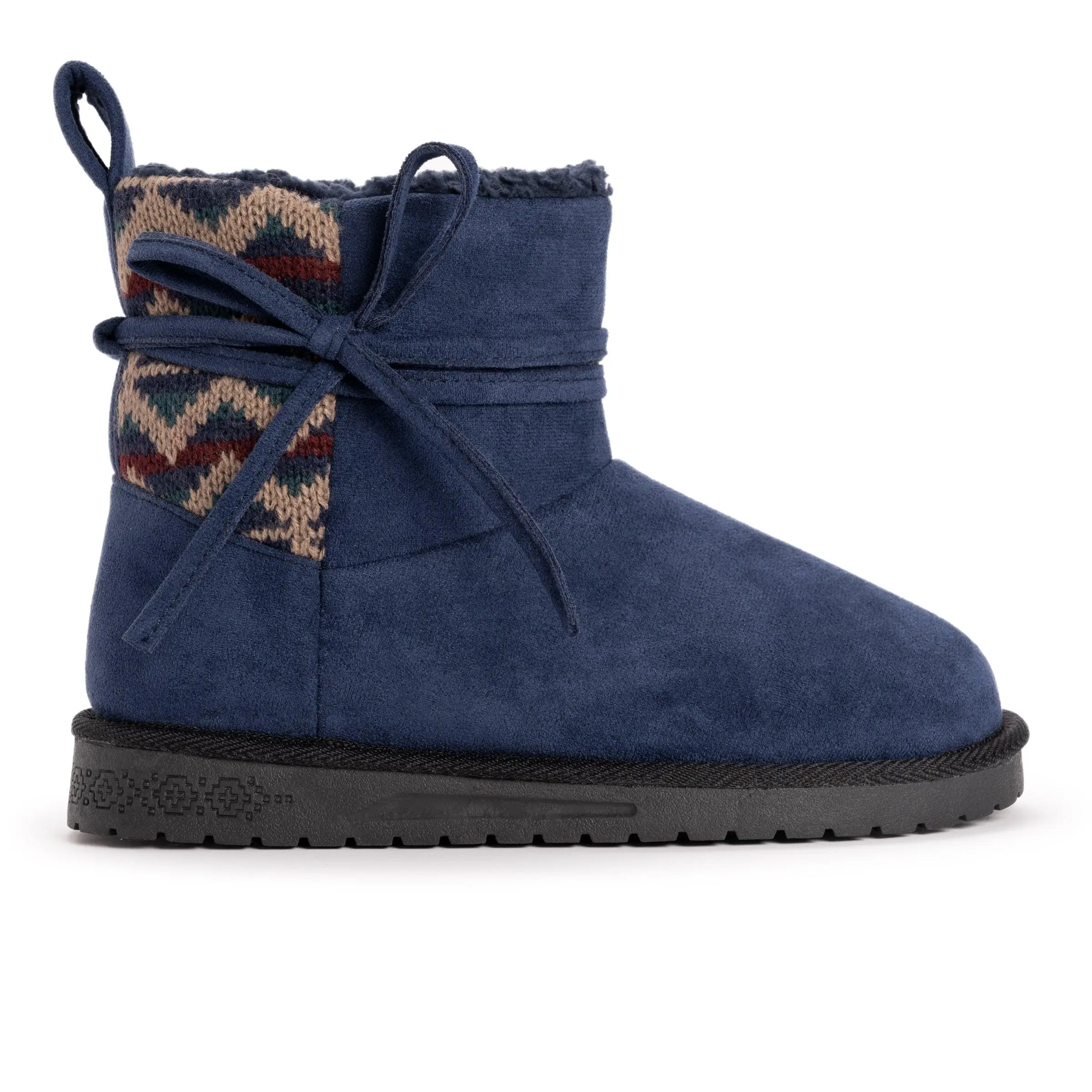 Soft and sweet Essentials by MUK LUKS Teenie Boots are a pretty way to warm up. Beautiful knits and cute tie detail pull your look together while durable sole keeps feet warm and dry. Wipe with a damp cloth to clean, no bleach, lay flat to dry.