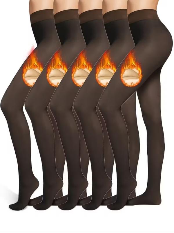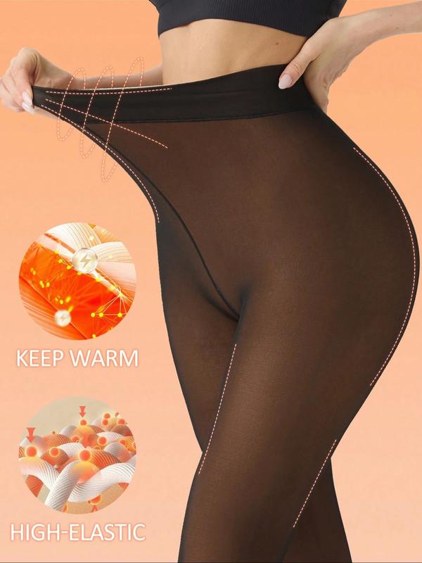 Women's Solid Color Thermal Lined Tights, Casual Comfy High Stretch Warm Pantyhose for Daily Wear, Ladies Tights for Fall & Winter