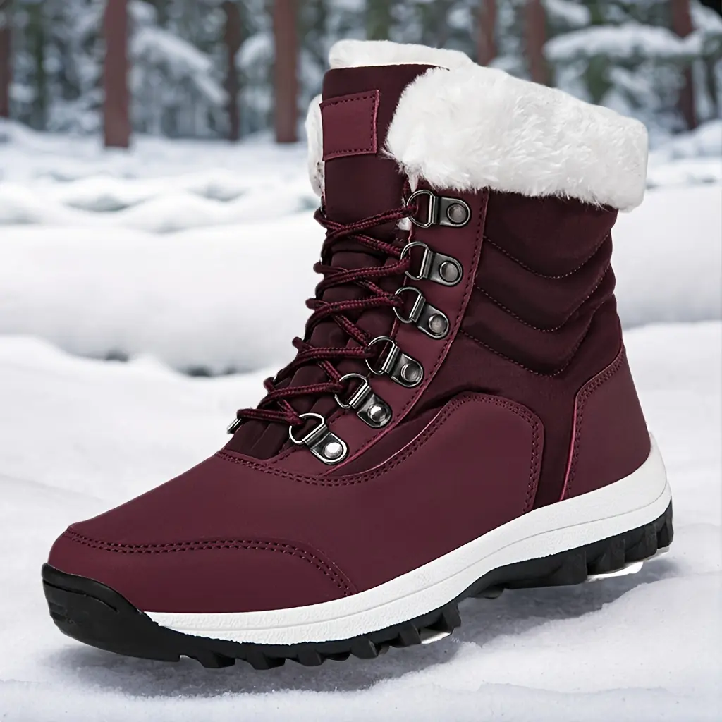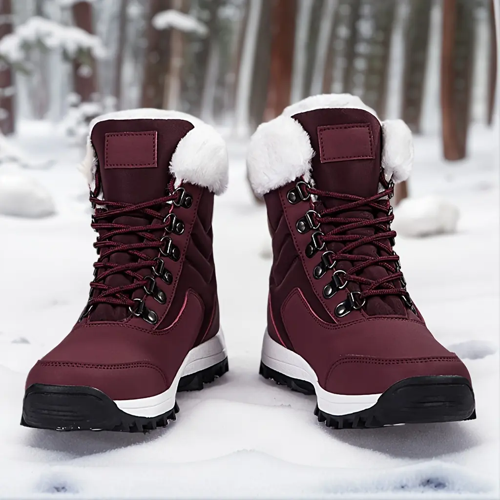 Women's Solid Color Design Thermal Lined Hiking Shoes