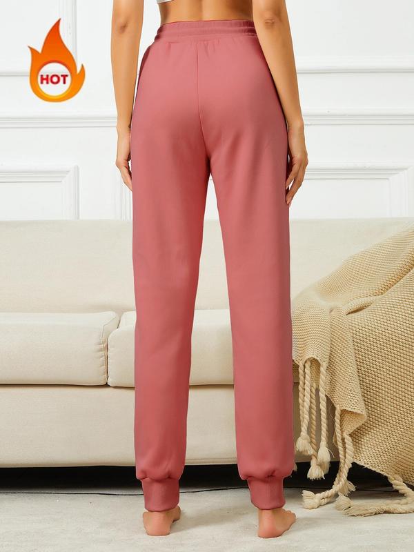 Women's Solid Drawstring Waist Thermal Lined Sweatpants, Casual Elastic Waist Pocket Jogger Pants for Fall & Winter, Women's Trousers for Daily Wear