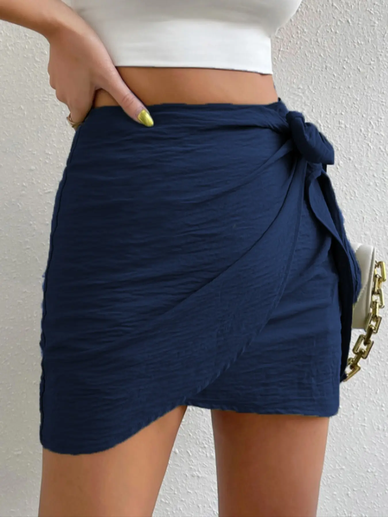 5. Women's Solid Color Tie Side Wrap Skirt, Elegant Fashion Casual Short Skirt for Daily Outdoor Wear, Women Bottoms for Summer