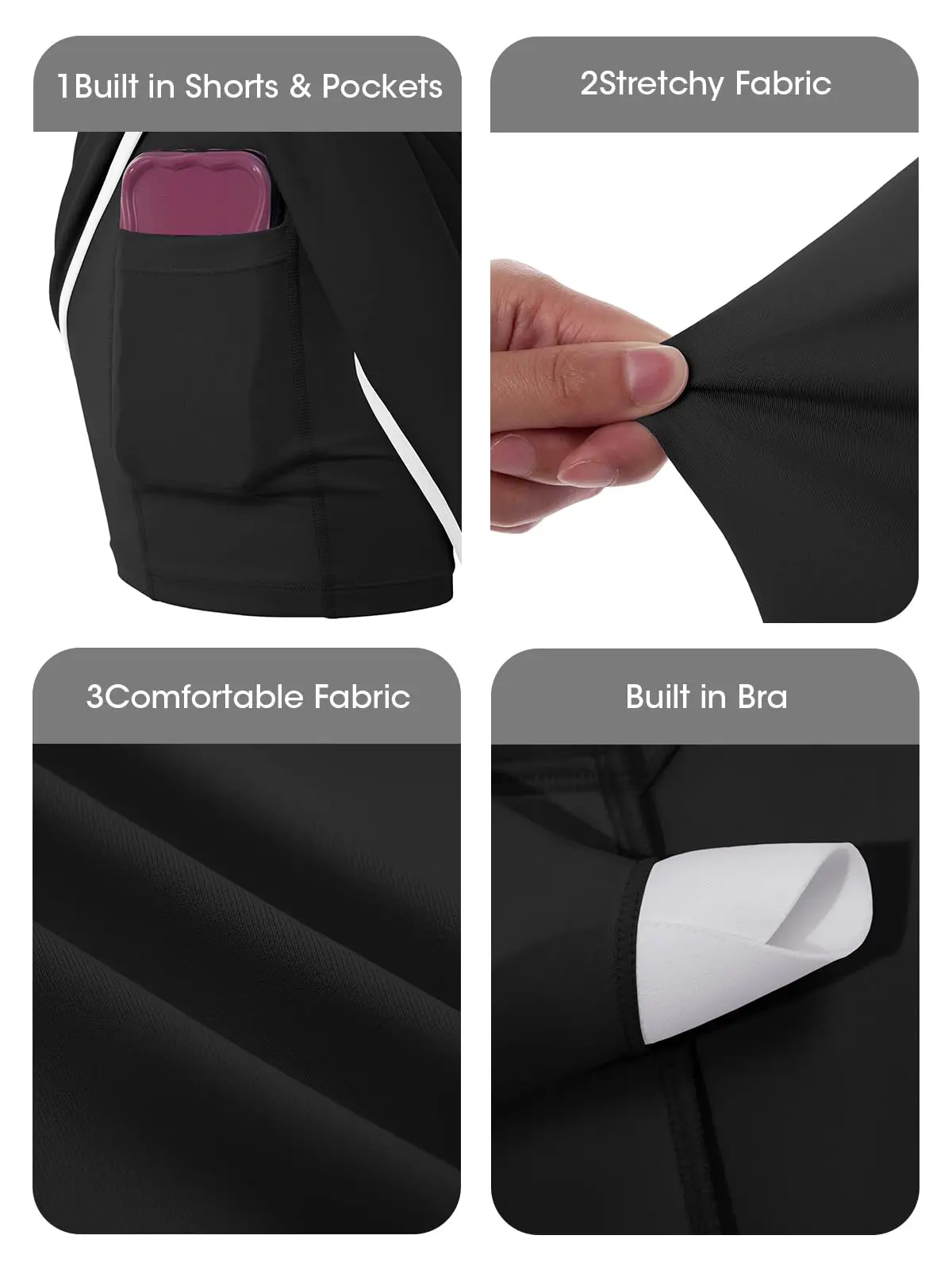 ·Built-in shorts for full coverage.